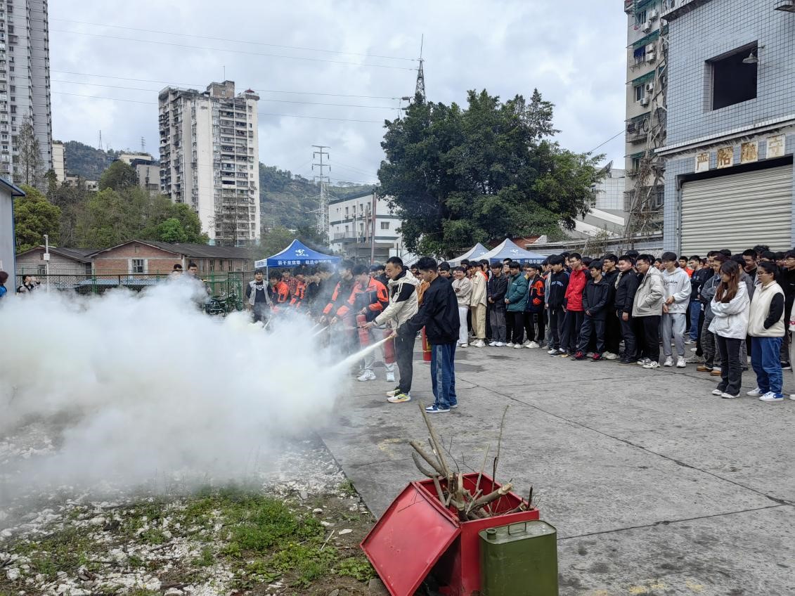 疏散演练结束后,在学校安全处的协助下,利民消防中心教官进行了火灾消防安全知识培训和灭火器使用现场示范教学,在场师生认真聆听学习,积极动手体验消防灭火过程,严格按照操作步骤完成现场模拟灭火技能培训。