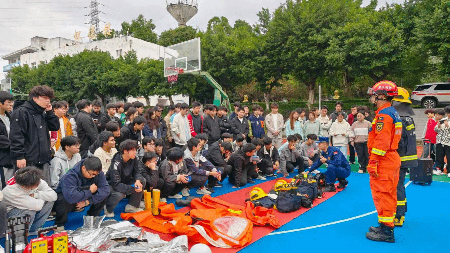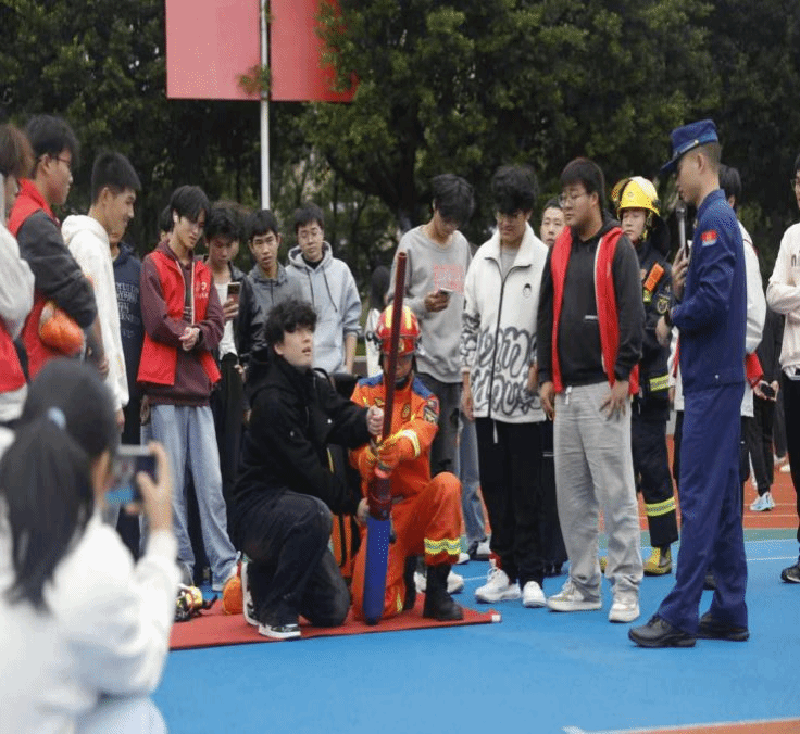 在消防装备展示区,消防服、破拆工具、水带等专业装备吸引了众多同学驻足参观。消防队员耐心讲解各类装备的功能和使用场景,让同学们近距离感受消防救援工作的专业性与严谨性。最后以消防知识有奖问答、趣味互动游戏的方式进一步巩固了学习成果,现场气氛热烈、欢声笑语不断。