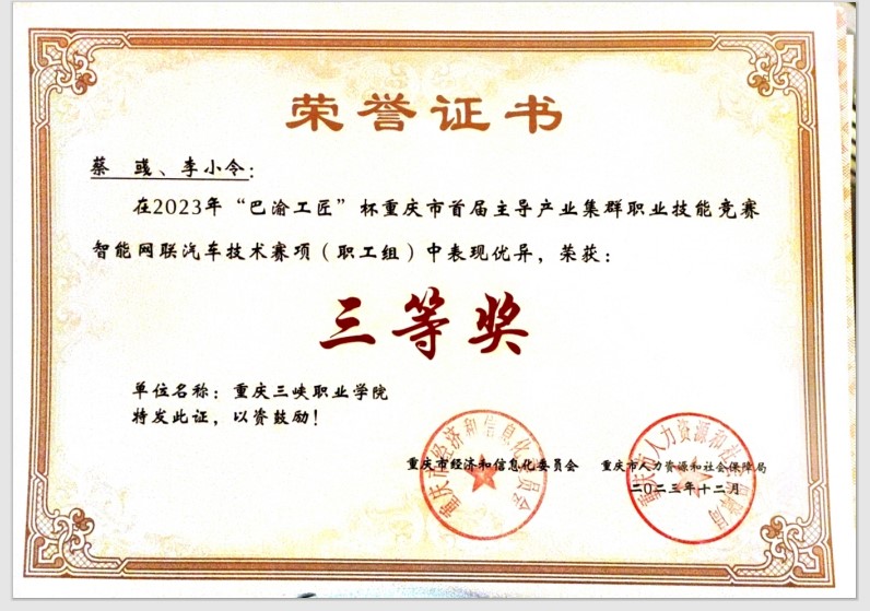 本专业紧跟时代步伐,依托学院深厚的机、电、网络类专业底蕴,于2024年开设智能网联汽车专业 。专业团队深入企业实地调研专业人才需求和就业岗位、制定了《智能网联汽车技术专业人才培养方案》。现有专兼职教师15人,研究生以上学历9人,教授(/教授级高工)1名,副教授(/高级工程师) 4名,高级技师 8人,双师型比例达到90%。本专业教师和学生主要成绩:◆2023“巴渝工匠”杯重庆市首届主导产业集群职业技能竞赛智能网联汽车技术赛项(职工组),第4名,三等奖;◆2023“巴渝工匠”杯重庆市首届主导产业集群职业技能竞赛智能网联汽车技术赛项(学生组),优胜奖;◆2023-2024年重庆市职业院校技能大赛智能网联汽车技术赛项,三等奖;
