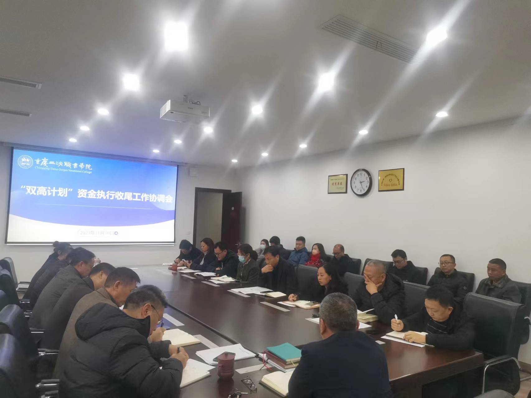 双高办负责人汇报了近期的重点工作。第一,通报审计第二轮入校检查的意见;第二,根据审计反馈意见,点对点补充佐证材料;第三,整理提供“双高”项目固定资产采购清单;第四,说明国家“双高”终期验收打分体系;第五,各子项目、专业群,认真研判12月5日前不能完成支付的项目是否继续执行。