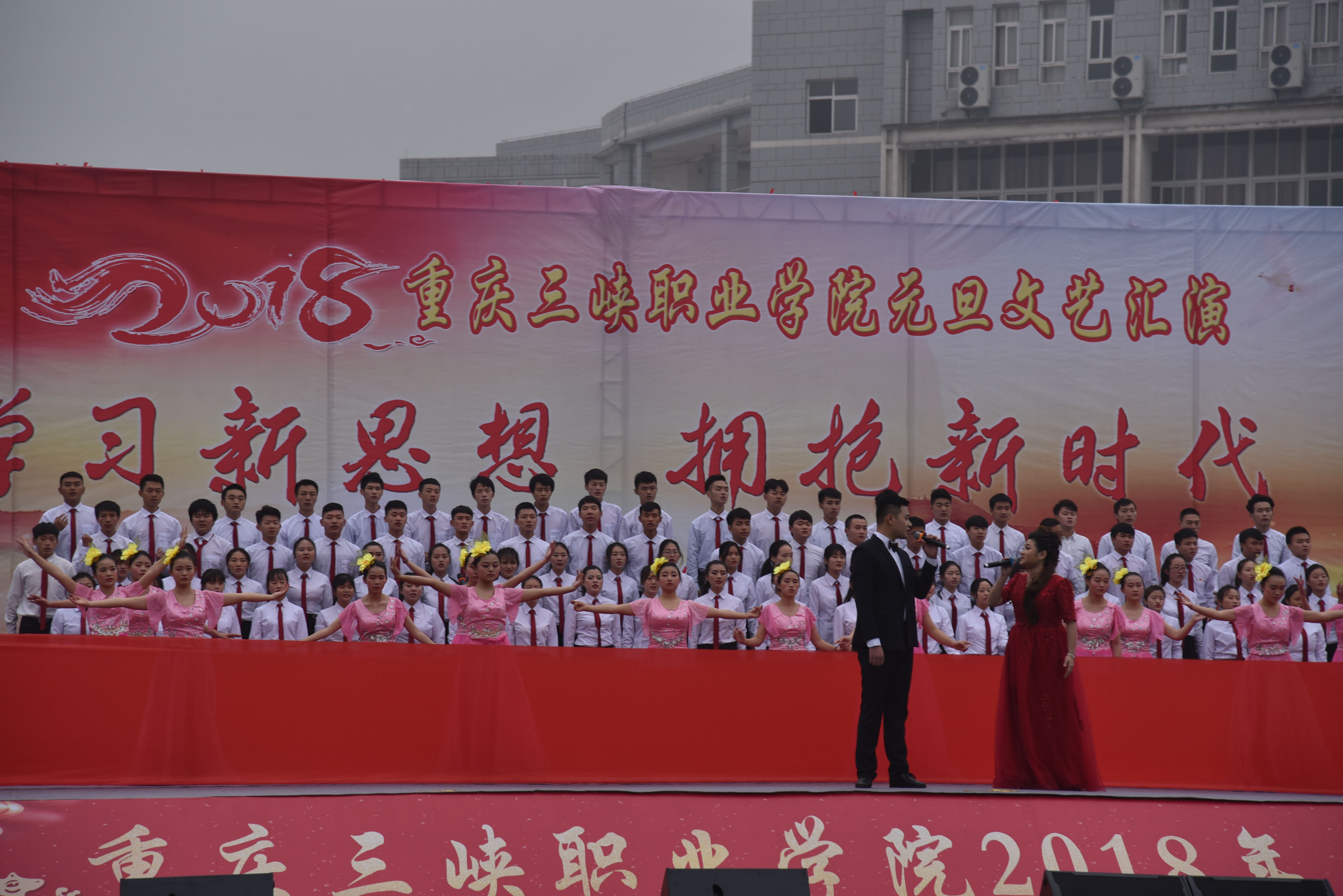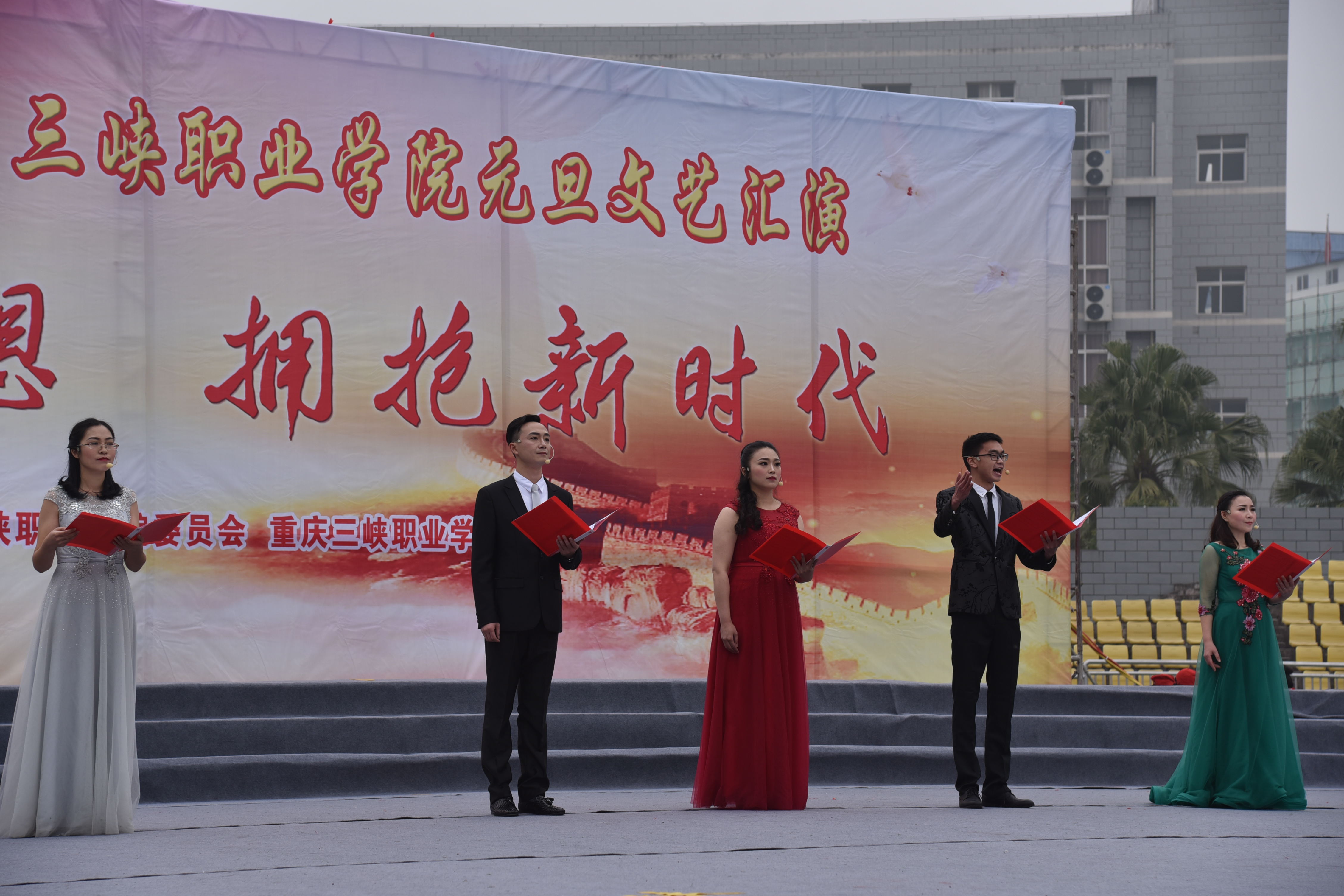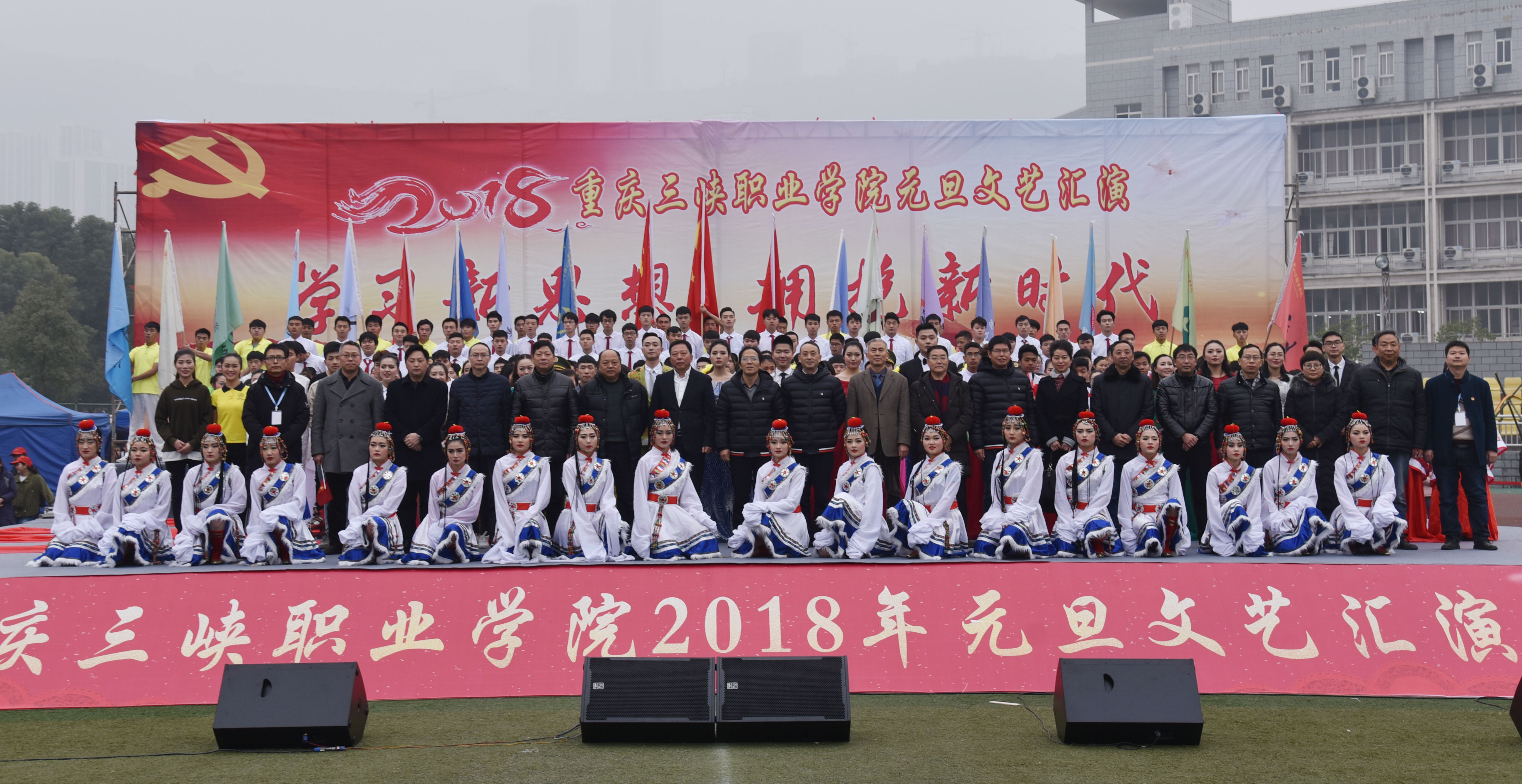 12月27日下午3点,重庆三峡职业学院足球场座无虚席,盛况空前,我院“学习新思想 拥抱新时代”2018年元旦文艺汇演在这里隆重举行。学院党委书记陈章、学院院长杨和平、学院党委副书记、纪委书记龙仕平、学院副院长张智、学院副院长杨建宏、学院副院长赵福奎、党政办、组织统战部、学生处、教务处、安全处、基建后勤处、招生就业处、各系党总支、基础部、工会、团委等相关处室负责人以及各系团总支书记等4000余名师生欢聚一堂,辞旧迎新,共同展望美好的未来。
