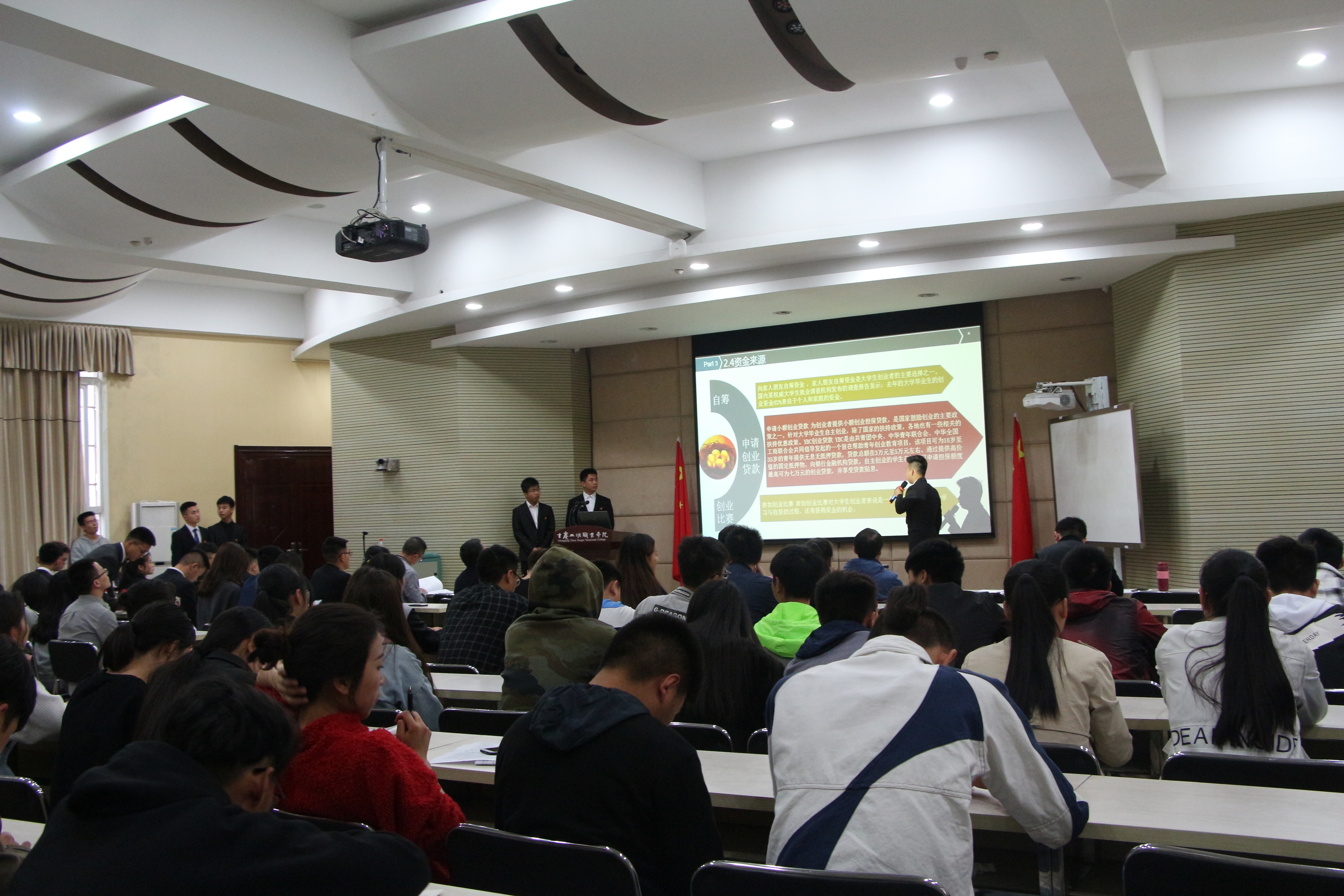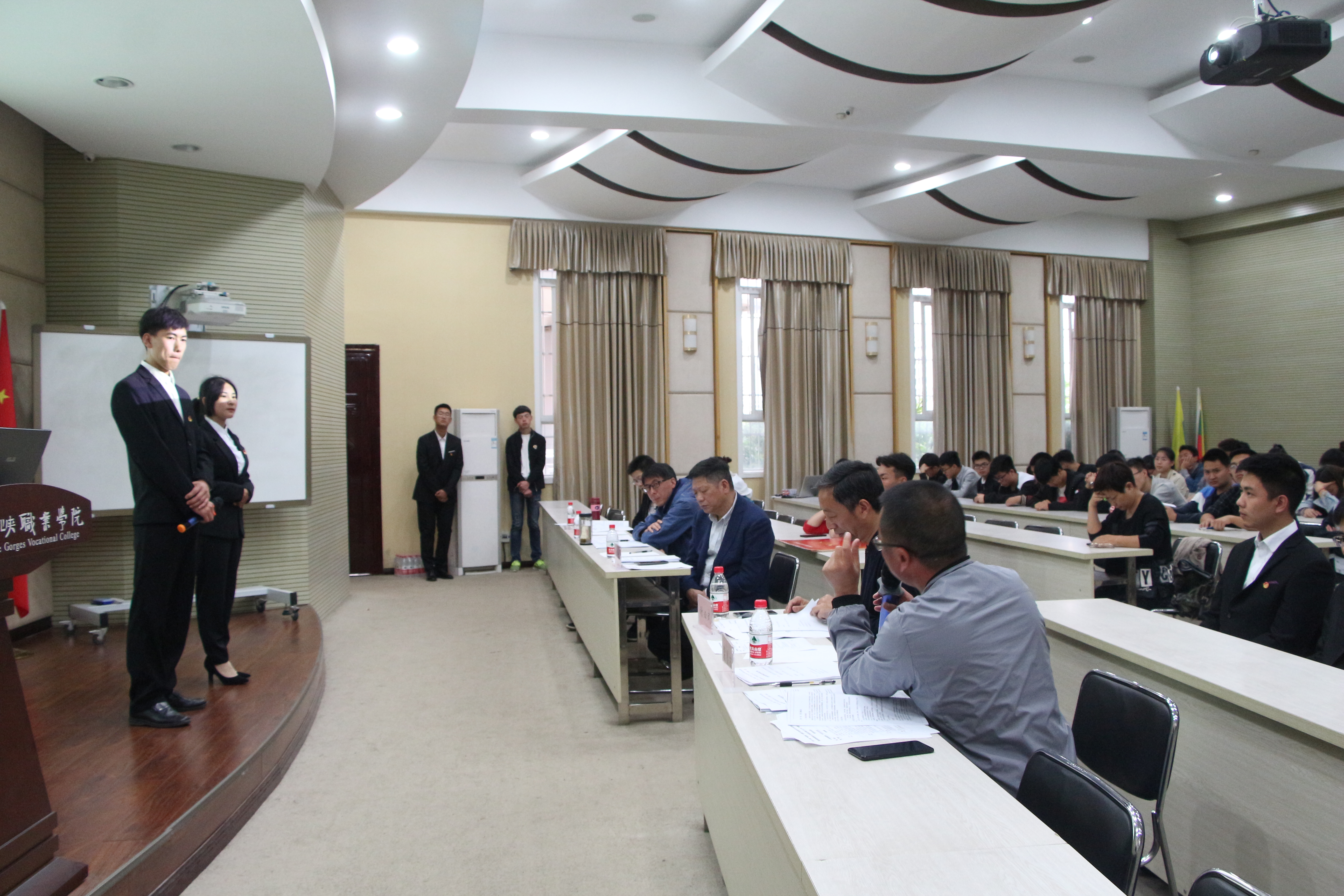 为引导和激励我校学生弘扬时代精神、创新精神和实践能力,发掘和培养一批创新创效创业高素质技能人才,同时选拔出我校优秀项目参加2019年“挑战杯”重庆市大学生课外学术科技作品竞赛。5月7日下午16:00,2019年“挑战杯”全国大学生课外学术科技作品竞赛校内选拔赛在博雅楼207会议室举行。学校党委委员、副校长杨建宏教授出席了本次比赛,农林科技系谢必武教授、马克思主义学院张斌教授、教务处处长袁德梽教授、科研处副处长廖勤丰副教授本次大赛的评委,各学院团总支书记、指导教师等200余名师生现场观摩了比赛。