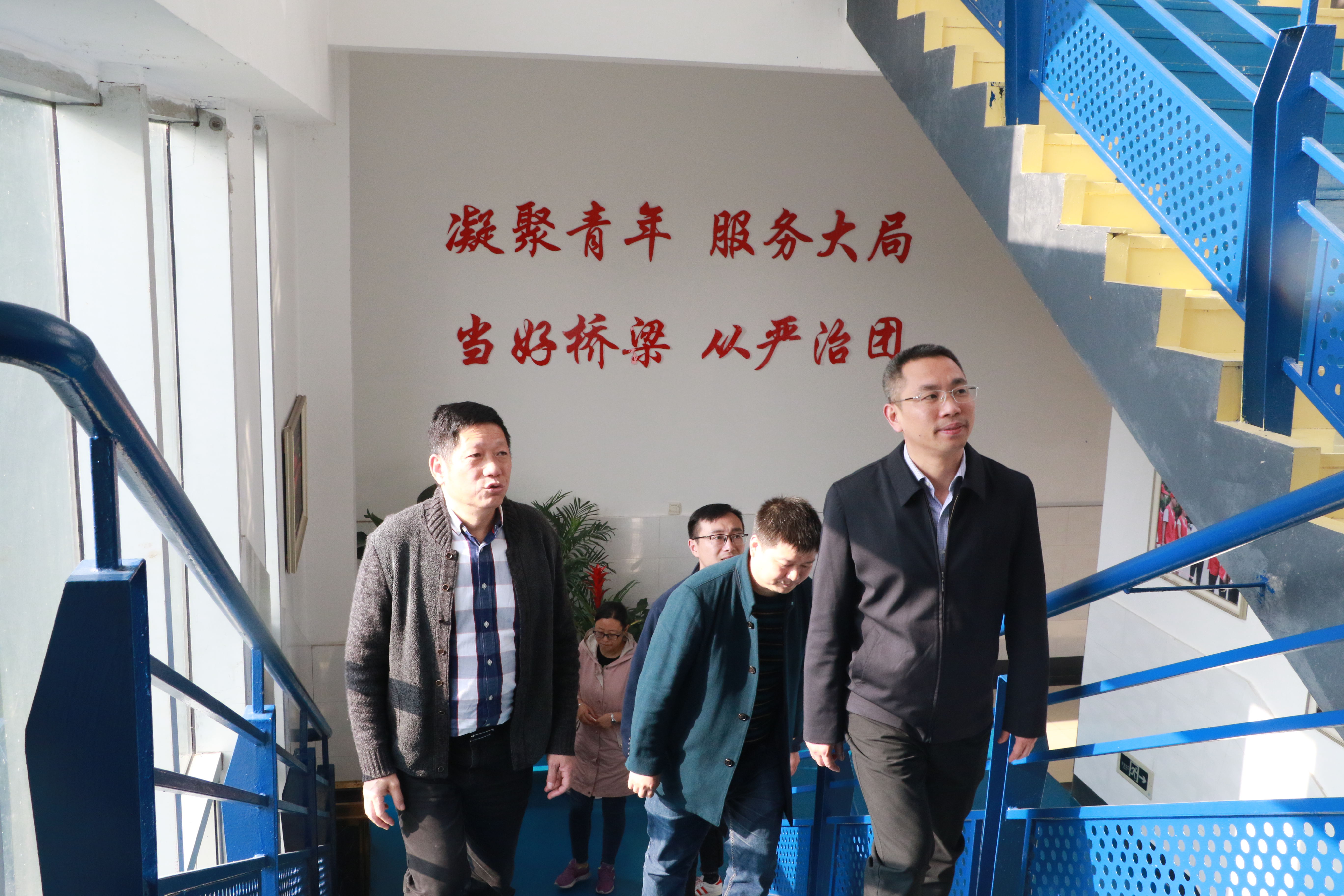 在交流过程中,江书记对我校共青团改革推进情况、企业订单班的特色教学、创新创业基地、校园文化建设等方面给予了充分肯定,并表示我校共青团在今后的工作开展中要紧紧围绕学校自身的专业特色和办学优势,进一步深化全国五四红旗团委品牌,持续探索创新工作方式方法,扎实抓好青年学生思想引领、学生活动、志愿服务、社会实践以及青年学习等方面工作,凝练出特色,打造出亮点,体现出高度。