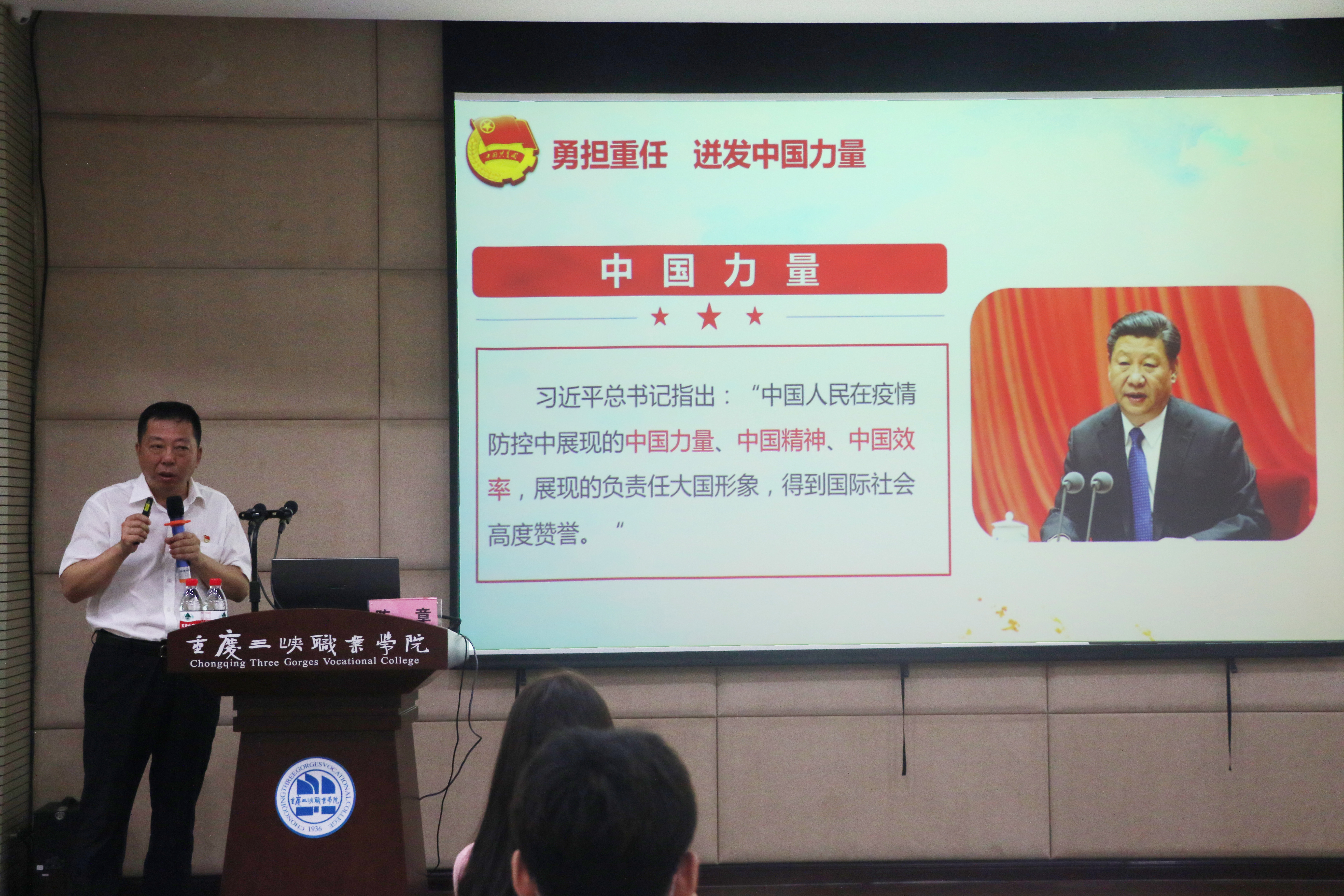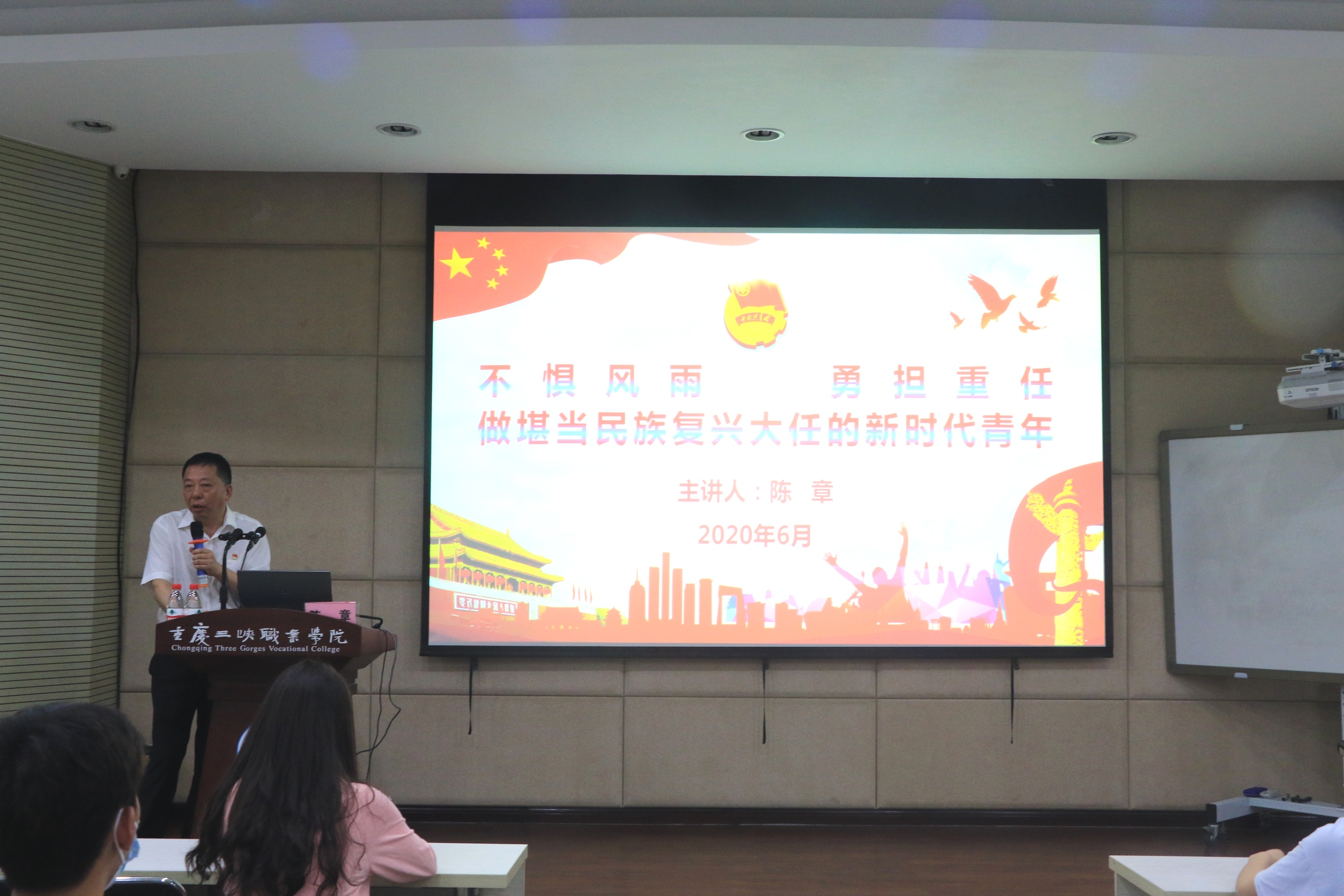 团课上,陈章书记围绕“不惧风雨 交出合格答卷”“勇担重任 迸发中国力量”“共抗疫情 绽放青春之花”“爱国力行 坚定制度自信”四个方面作了专题讲授。