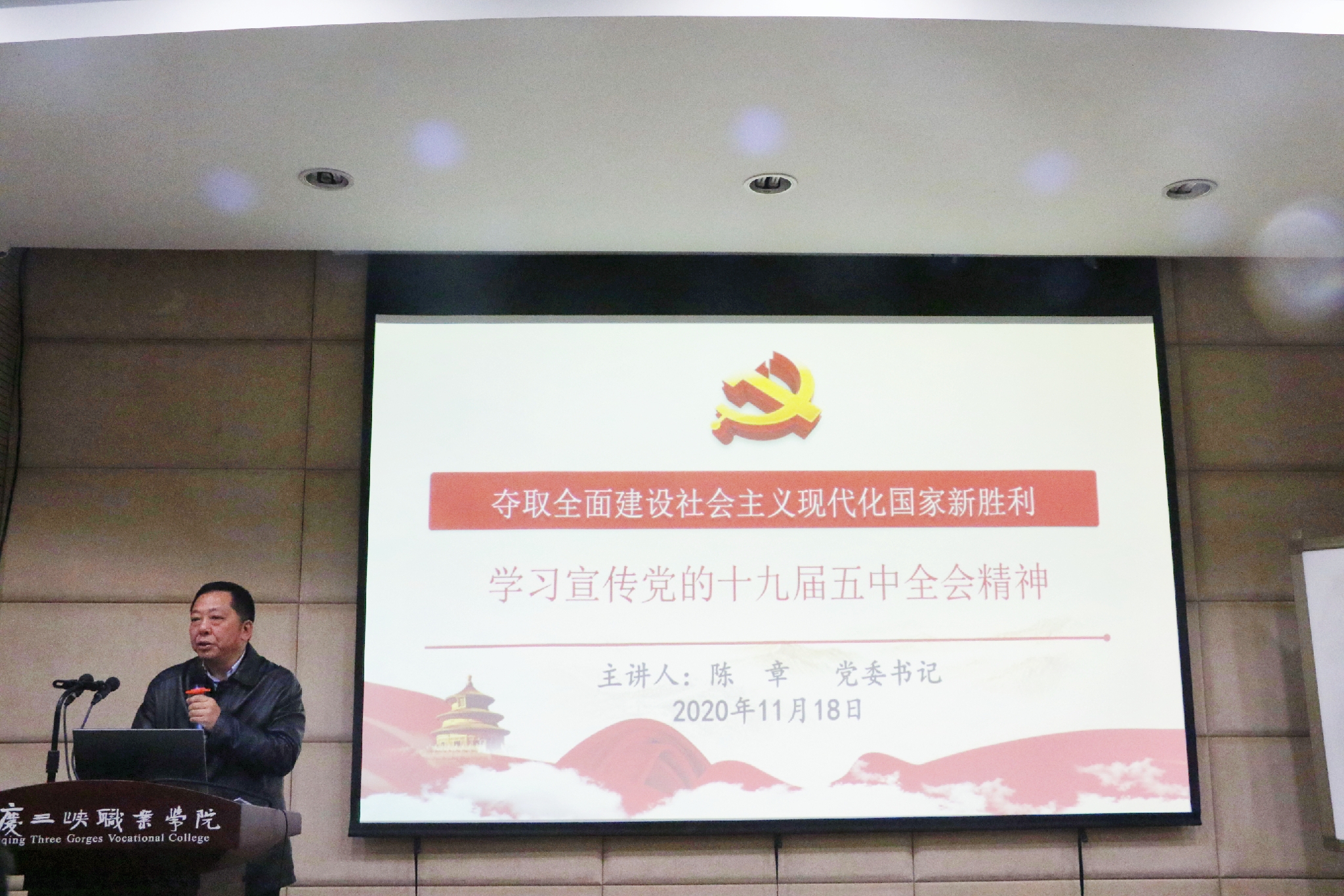 陈章书记围绕“十九届五中全会基本情况”“十九届五中全会主要精神”“认真学习宣传贯彻落实党的十九届五中全会精神”三个主要方面,结合我校实际,与师生们共同学习党的十九届五中全会精神。