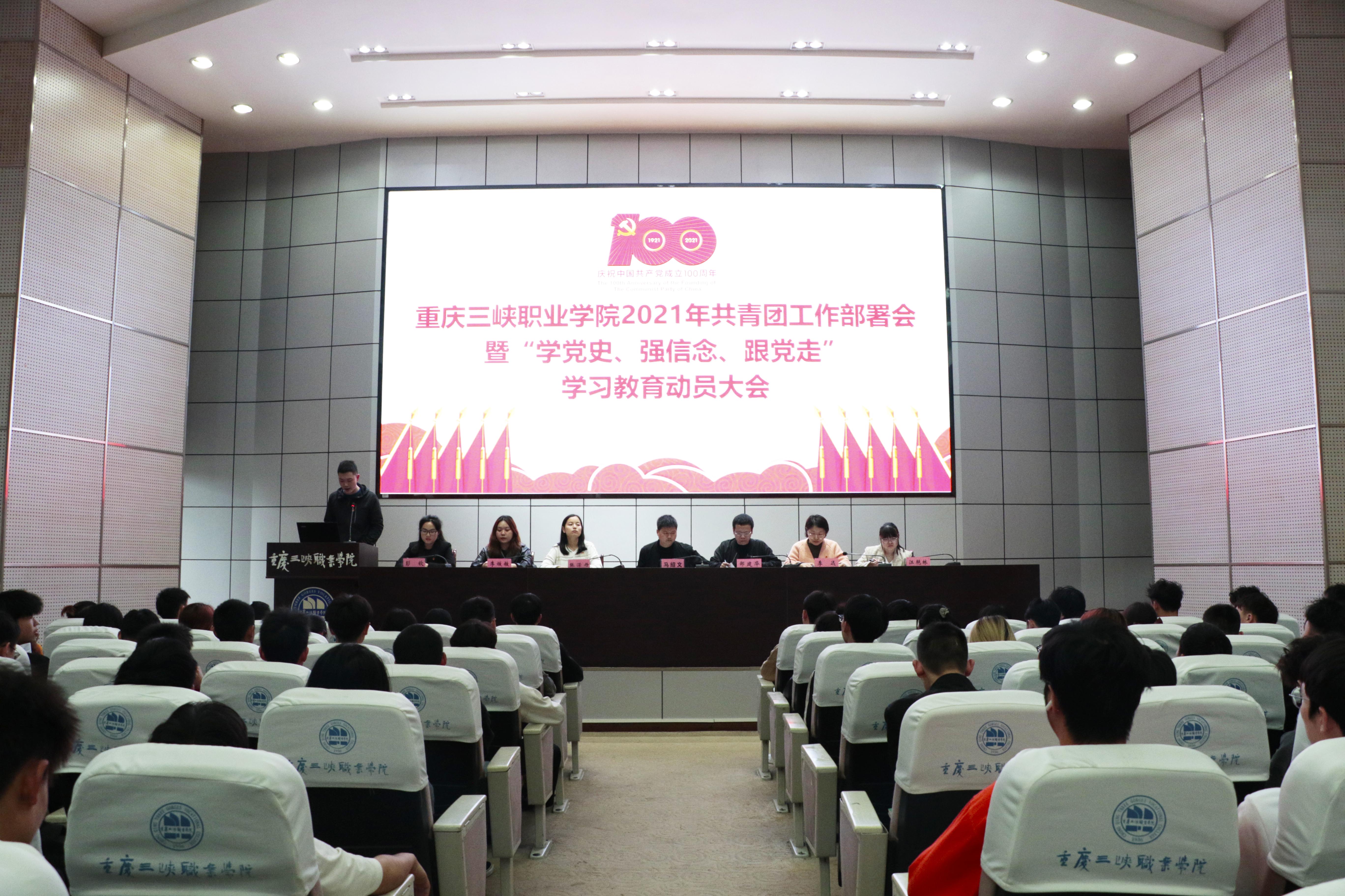 为深入推进党史学习教育,深化团学组织改革,加强基层团组织建设,4月15日,我院召开2021年共青团工作部署会暨“学党史、强信念、跟党走”学习教育动员大会。学院学工部部长、学生处处长、团委书记马绍文,团委全体工作人员,二级学院团总支书记,“青马工程”学员代表,团支部书记、团员青年代表共计200余人参加会议。