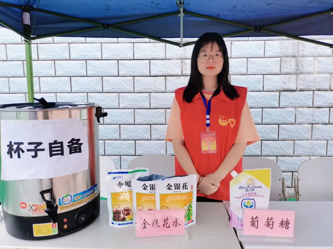 在服务期间,值班的学生干部们随时关注饮用水量和避暑用品,及时补足、保障供给,同时积极协助医务工作人员做好医务服务,用心用情为小萌新们做好避暑服务。学生干部们每天都以饱满的热情做好志愿服务工作,充分展示了我院学生干部的青春风采。