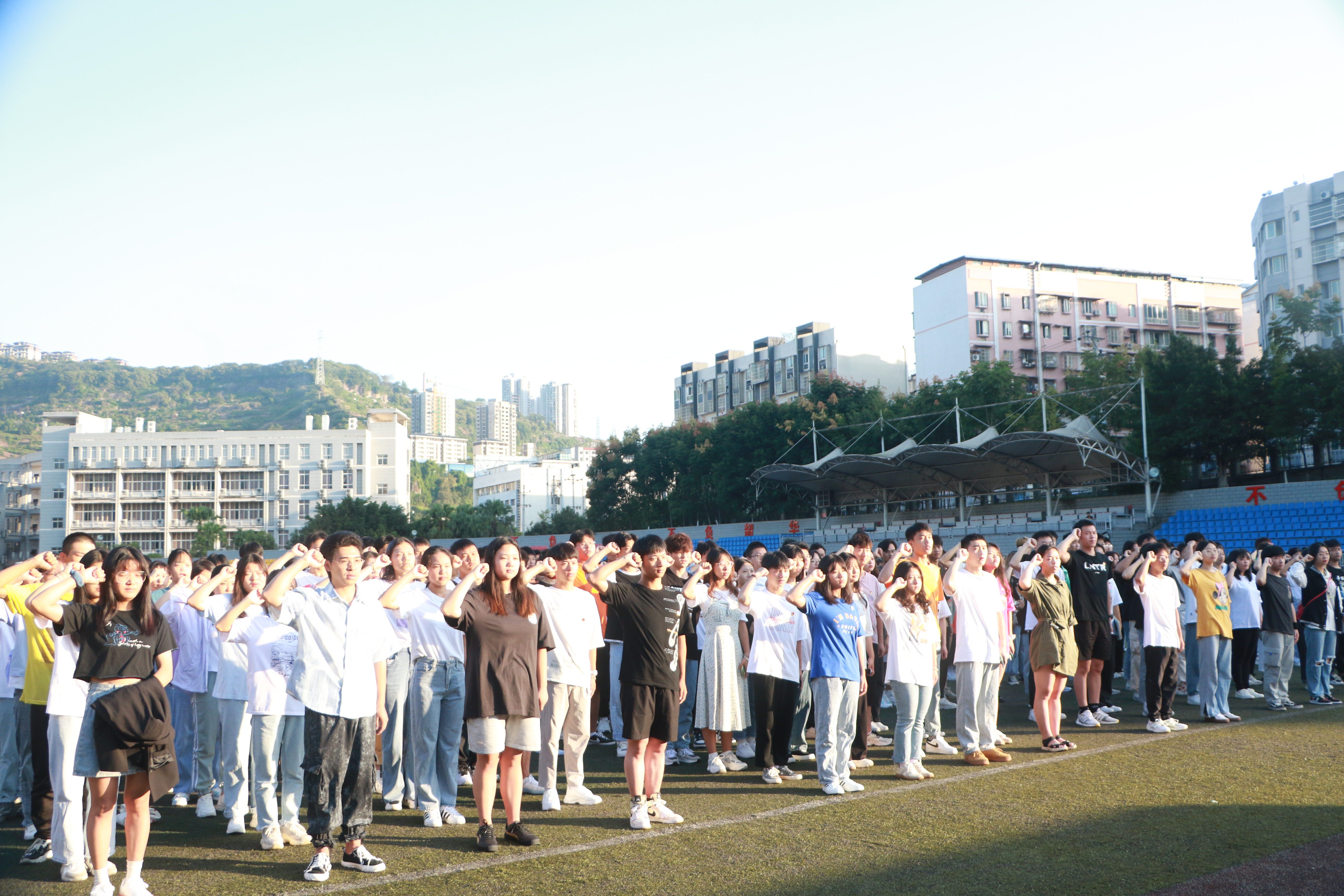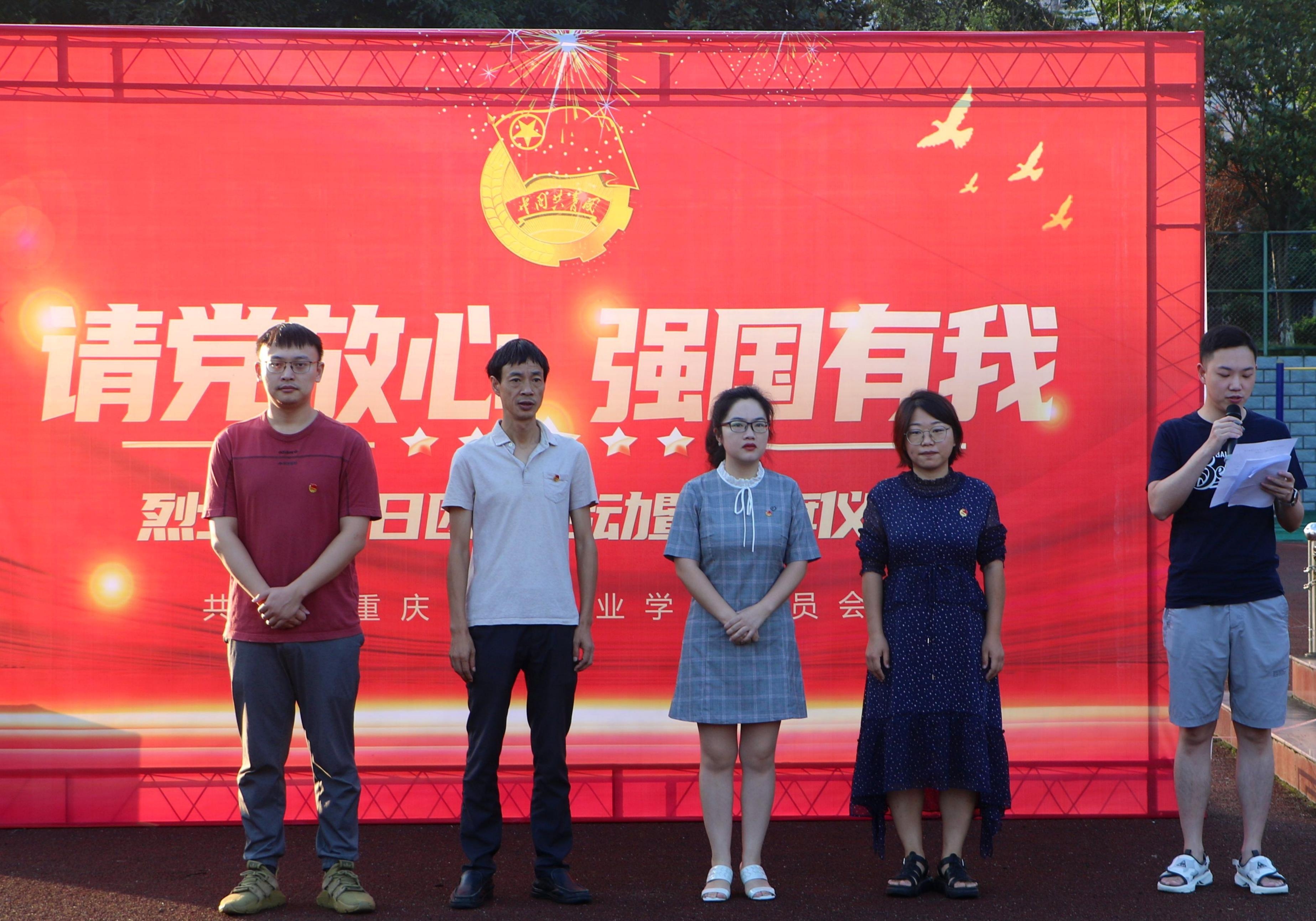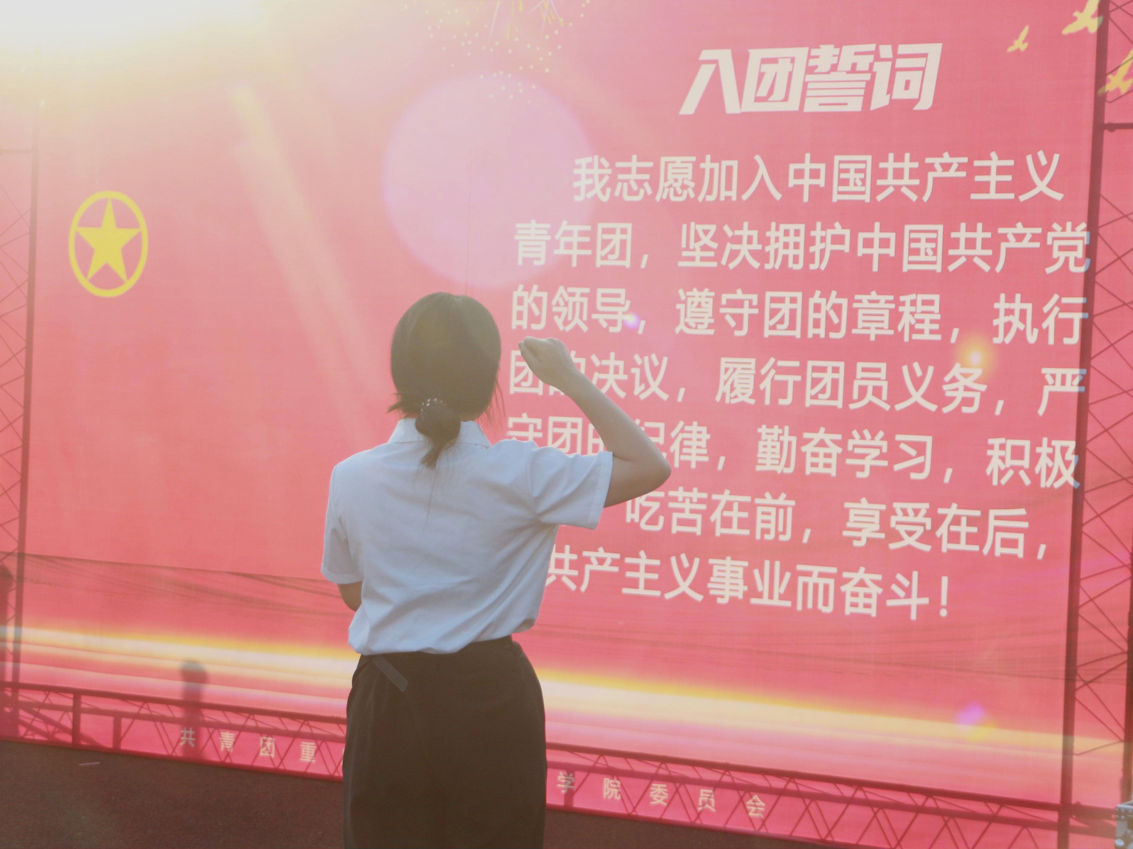 在团员青年陈雨的带领下,全场师生一起在团旗下庄严宣誓,重温入团誓词。