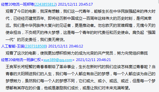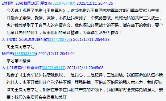 观影过程中,青马学员们在深刻感受到王良军长卓越的军事指挥才能和“英勇忠魂、不负青春”的革命斗志,使大家备受感动和鼓舞,更加坚定了热爱祖国、热爱家乡、热爱人民的信念。
