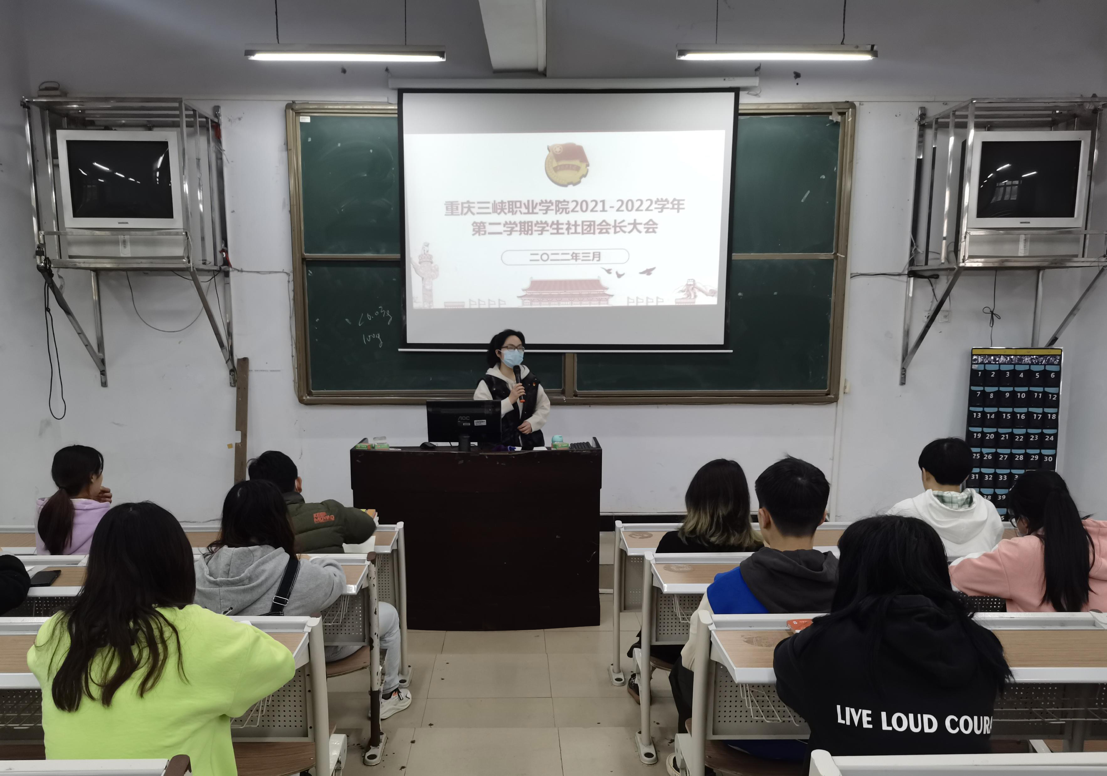 为进一步规范学生社团工作,使我院社团活动有序有效开展,保障学生社团组织健康发展,发挥学生社团组织育人功能,更好地为校园文化建设添砖加瓦,3月22日,院团委召开2021-2022学年第二学期学生社团会长大会。