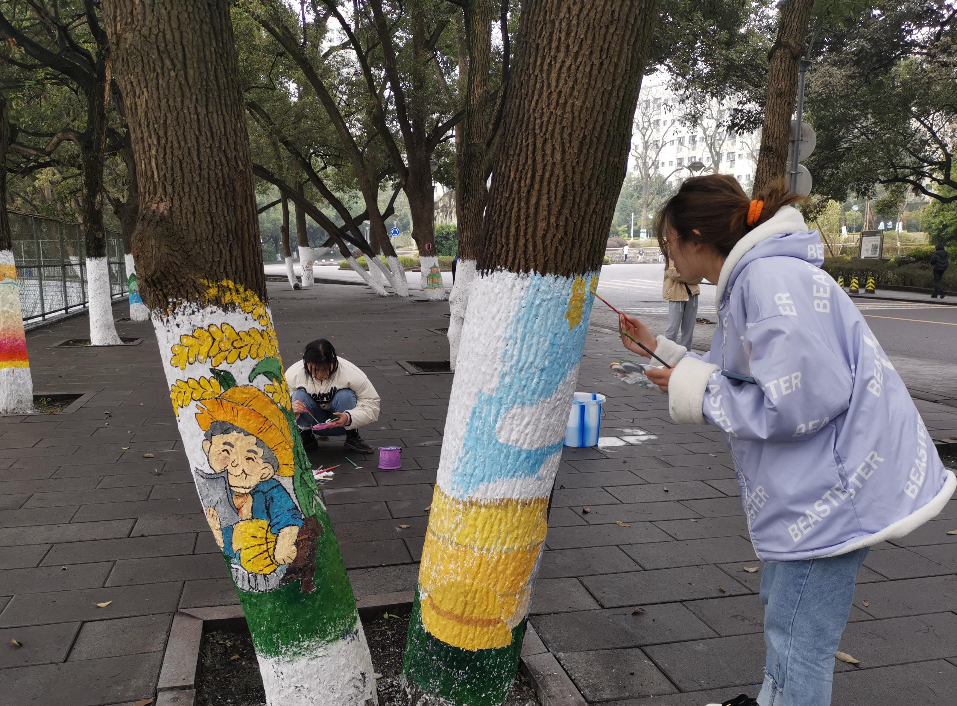 志愿者们在樟树林树干上描绘了24节气,图画栩栩如生,惟妙惟肖,成为校园一道新风景,希望同学们漫步在充满诗意的24节气樟树林里,编织出一首属于自己的大学歌谣。在修剪树木活动中,志愿者们对枯枝、下垂枝、增生枝进行修剪,大家不怕苦、不怕累,轮番上阵,修剪枝杈,修剪掉的树枝,清理场地,保持环境卫生,使校园花木更加整洁美观。志愿者通过实际行动,号召大家做一颗永不生锈的螺丝钉,在平凡岗位上兢兢业业,努力工作。