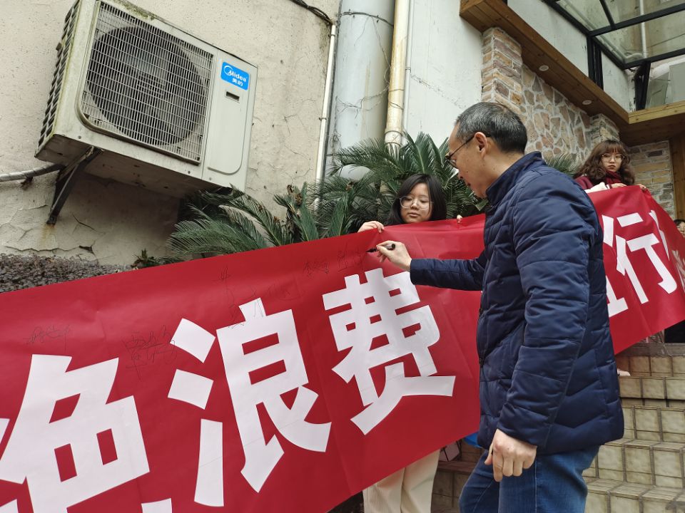 动物科技学院组织开展了“珍惜粮食 杜绝浪费 光盘行动 从我做起”系列志愿服务活动。志愿者在教工食堂、德香楼和禾缘楼开展了“光盘行动”签名活动,以及设置了“节约劝导岗”,通过本次活动,加强全校师生节约粮食的意识,使光盘不仅仅成为只是挂在嘴边的口号,而真正成为一种自觉行动。