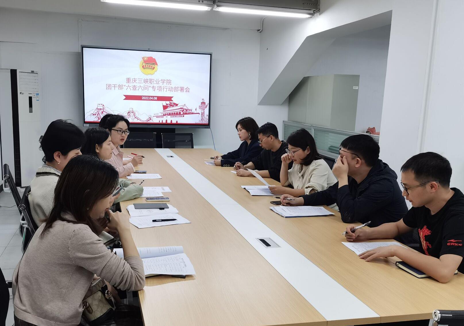 为深入学习贯彻习近平总书记对团干部提出的系列重要要求,认真落实共青团中央《新时代全面从严治团实施纲要》《关于提高政治站位改进工作作风的六条规定》精神,从严抓好团干部队伍作风建设、进一步改进作风狠抓落实。4月8日,重庆三峡职业学院召开团干部“六查六问”专项行动动员部署会。团委全体工作人员、各二级学院团总支书记参加会议。