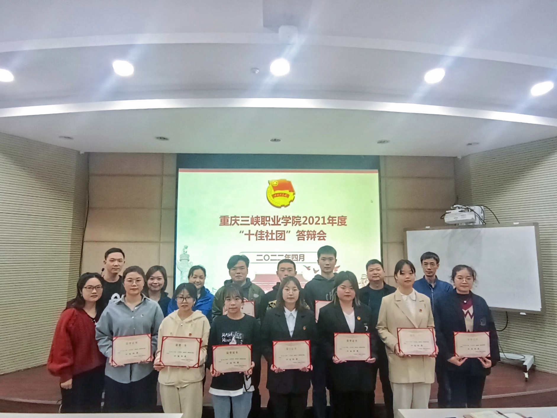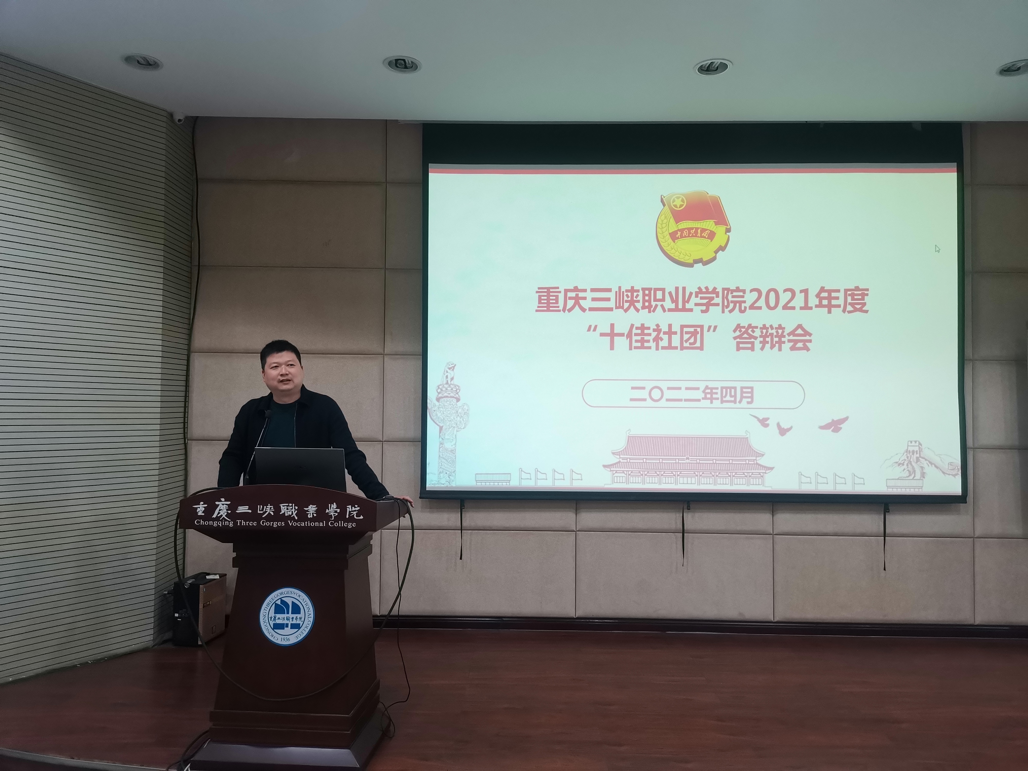 为充分发挥学生社团育人功能,促进学生社团健康有序发展,根据学校下发的《重庆三峡职业学院学生社团建设管理办法》文件要求和重庆三峡职业学院2021年度“十佳社团”评选工作安排, 院团委于4月15日举办了重庆三峡职业学院2021年度“十佳社团”评选答辩会。学院党政办主任、团委书记马绍文,学工部副部长陶毅,招生就业处副处长赵婵娟担任答辩会的评委。