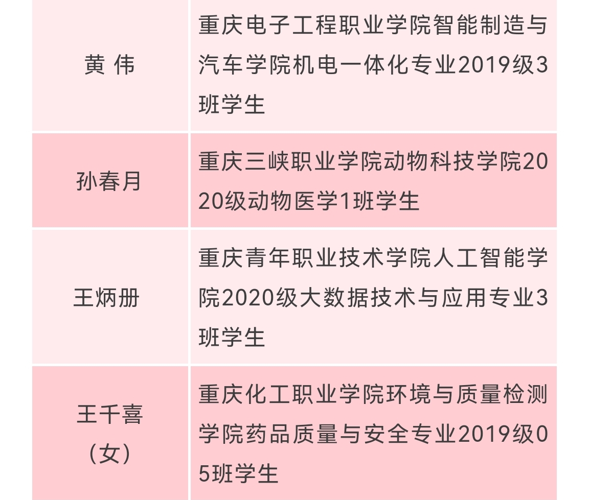 五四”青年节前夕,重庆市人力资源和社会保障局、共青团重庆市委员会发布关于表彰2022年“重庆青年五四奖章”的决定。重庆三峡职业学院广大团员在学习中勇创佳绩、建功立业,用实际行动践行了“请党放心,强国有我”的青春誓言,展现出新时代三峡职院青年的青春风采,学院团委荣获2021年度“重庆市五四红旗团委”荣誉称号,动物科技学院2020级动物医学1班的孙春月同学荣获“重庆市优秀共青团员”荣誉称号。