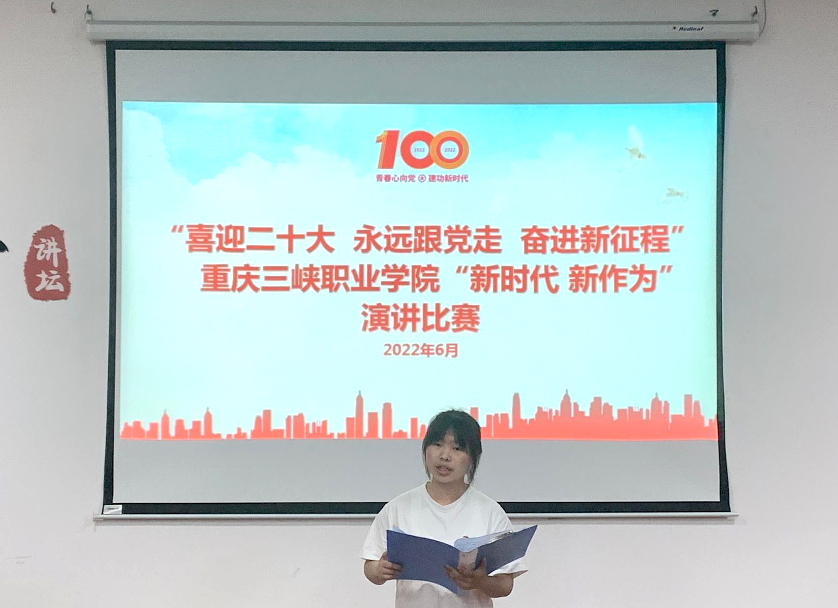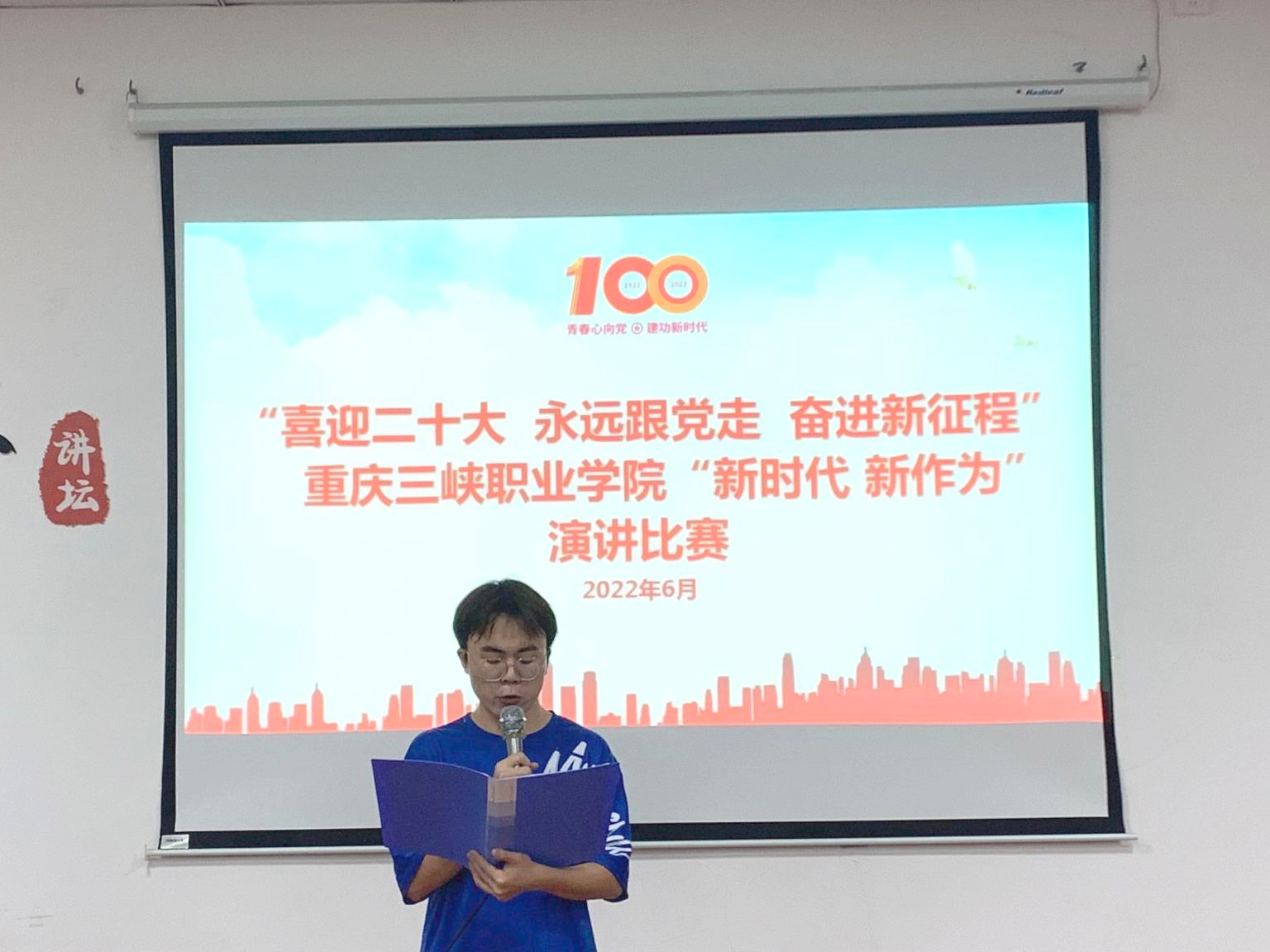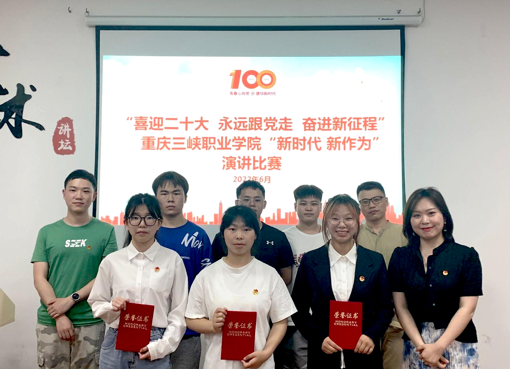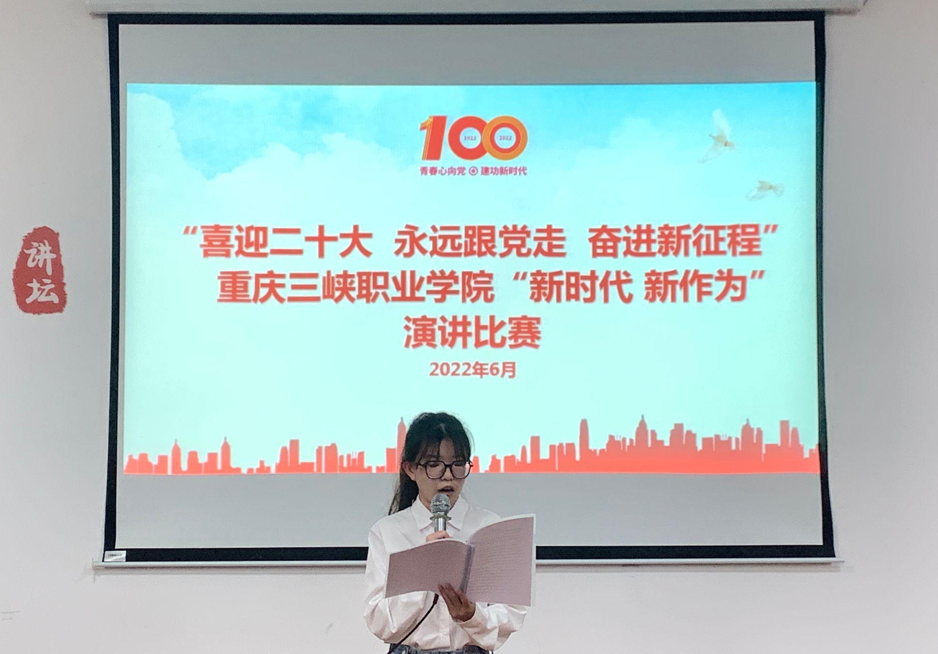 为深入学习贯彻习近平总书记在庆祝建团100周年大会上的重要讲话精神,结合“喜迎二十大、永远跟党走、奋进新征程”主题教育实践活动的总体部署,学院团委于2022年6月7日下午在艺术团活动大厅举办了“喜迎二十大、永远跟党走”重庆三峡职业学院“新时代 新作为”演讲比赛。通识教育学院郭子巍老师、团委汪子恒老师、团委李媛媛老师担任本次比赛评委。
