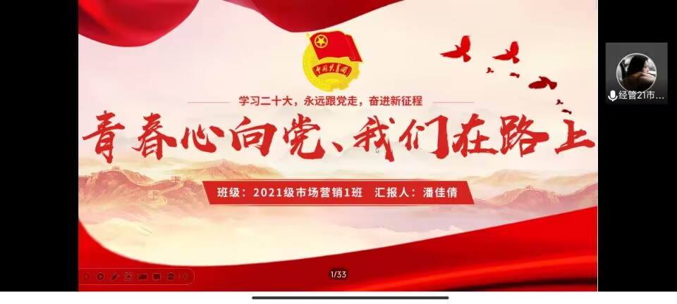 为学习贯彻党的二十大精神,进一步加强基层团组织的凝聚力和向心力,展现基层团组织风采,11月19日,校团委举办了第二届团支部风采大赛。会议采用腾讯会议进行直播,全体团支部书记在云端进行观摩。党政办主任、团委书记马绍文,学工部副部长陶毅,教务处副处长幸荔芸,学工部副部长、团委副书记彭钦担任比赛评委。
