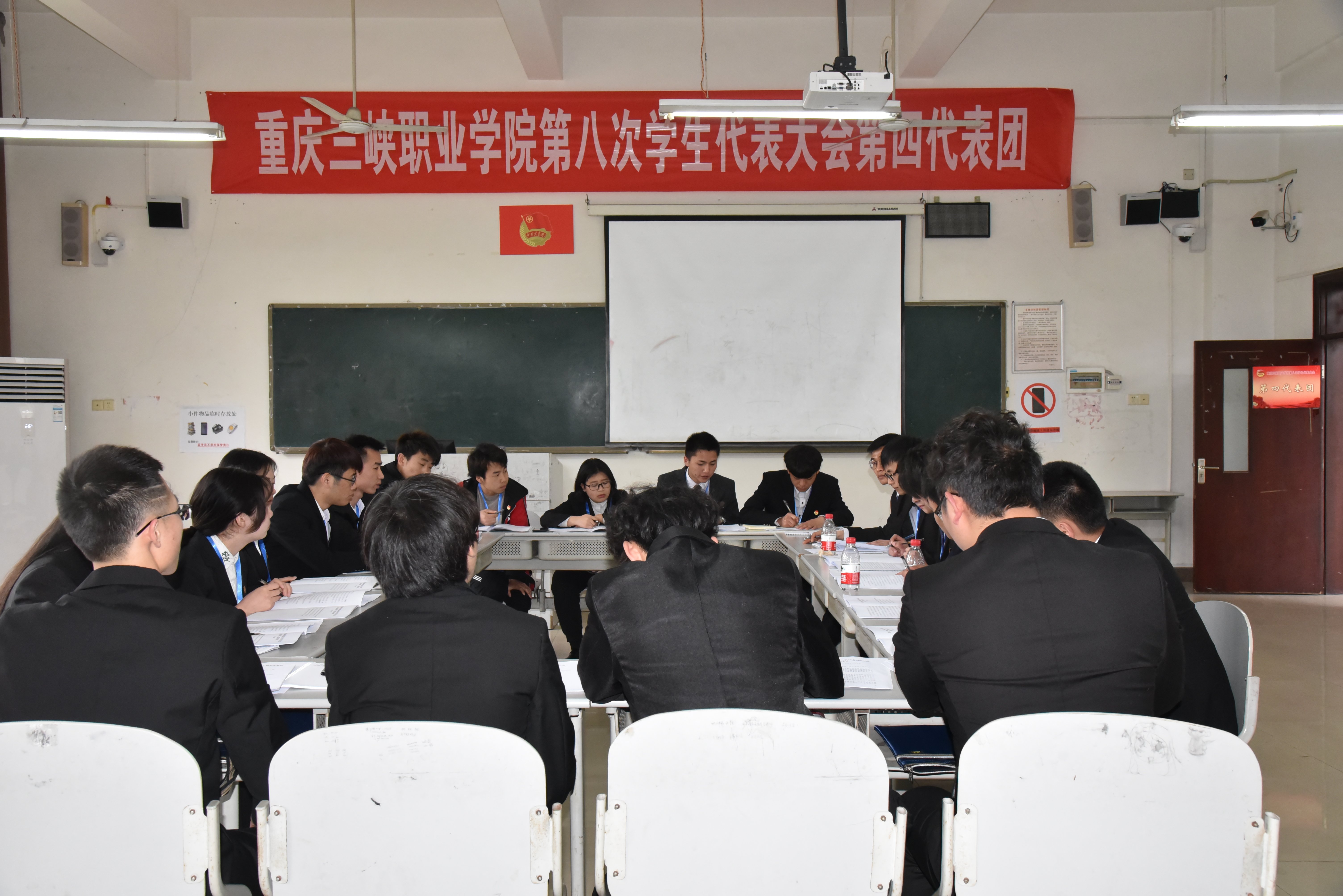 下午一点,团、学代会12个代表团分别召开分团讨论会。各代表团在团长的组织下,审议了《关于共青团重庆三峡职业学院第二届委员会工作报告的决议(草案)》《关于重庆三峡职业学院第七届学生委员会工作报告的决议(草案)》,讨论大会选举办法(草案),酝酿共青团重庆三峡职业学院第三届委员会委员候选人。主席团会议随后召开,主席团成员听取了各代表团会议关于工作报告讨论的情况通报;通过大会选举办法(草案);通过大会监票员建议名单;通过团委、学委委员候选人建议名单。