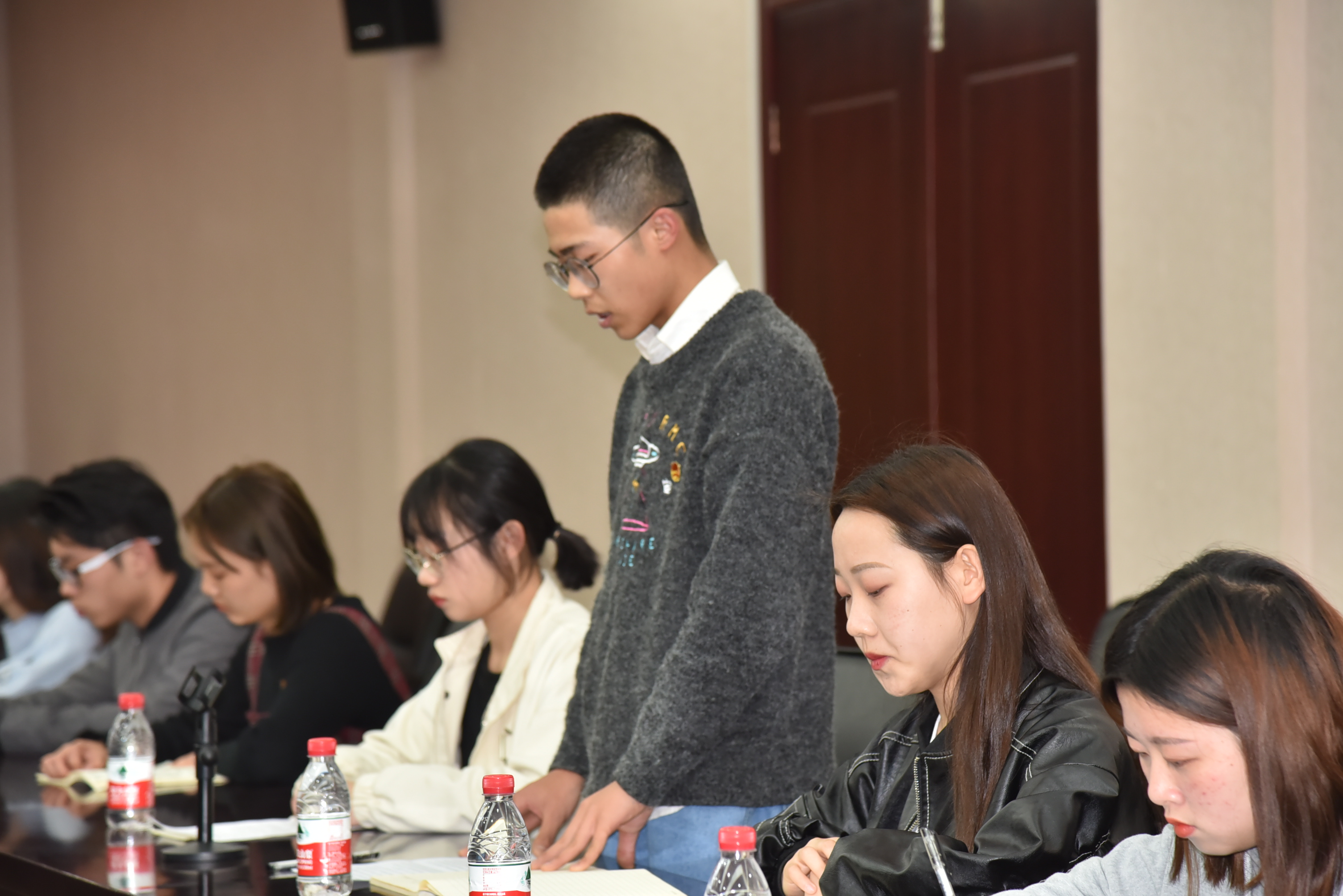 会上,在13位团委委员和29位学委委员自我介绍结束后,张倩、冯浩、张雨作为第八届学生委员会代表发言。三位同学纷纷表示会凝聚共识,勠力同心,提升能力,锤炼品格,为学校和团学工作的发展贡献自己的热情和力量。