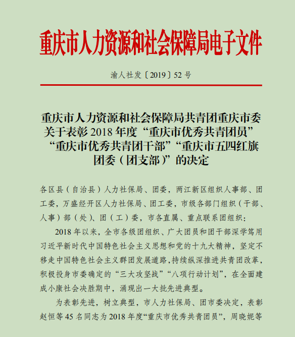 我校团支部荣获2018年度“重庆市五四红旗团支部”殊荣