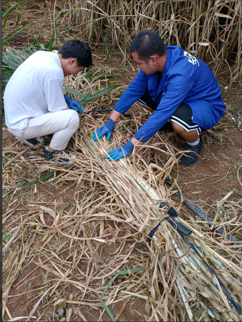 唐林、王云坤、张荣俊、张宇豪四位同学去了云南省红河哈尼族彝族自治州。他们走访村民,深入调研当地特色扶贫产业。了解到当地村民已经开始使用科学的耕作方法实行可持续发展绿色生产后,他们几个坚持理实合一的理念,帮助村民做农活,将割下的芦苇打成牛的饲料,转化为农场牲畜的食材,将污染和浪费大大减少。