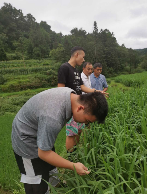 秦向宏,王雪, 林自力三位同学前往贵州省遵义市务川自治县分水镇,他们一起下到村组为农户水稻稻瘟病提供专业意见,指导农户们正确安全的农药使用方法。即使路途中遇到雷雨天气,他们仍然克服困难,圆满顺利地完成了任务。