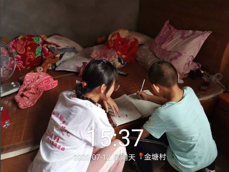 肖红梅同学回到四川遂宁,陪留守老人唠家常,给留守老人打理房前屋后,辅导留守儿童写作业,给予他们最大的关爱。