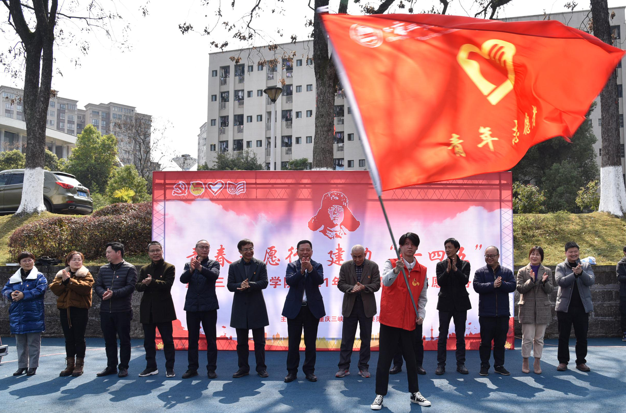 陈章书记为“学雷锋”志愿服务月活动授旗。