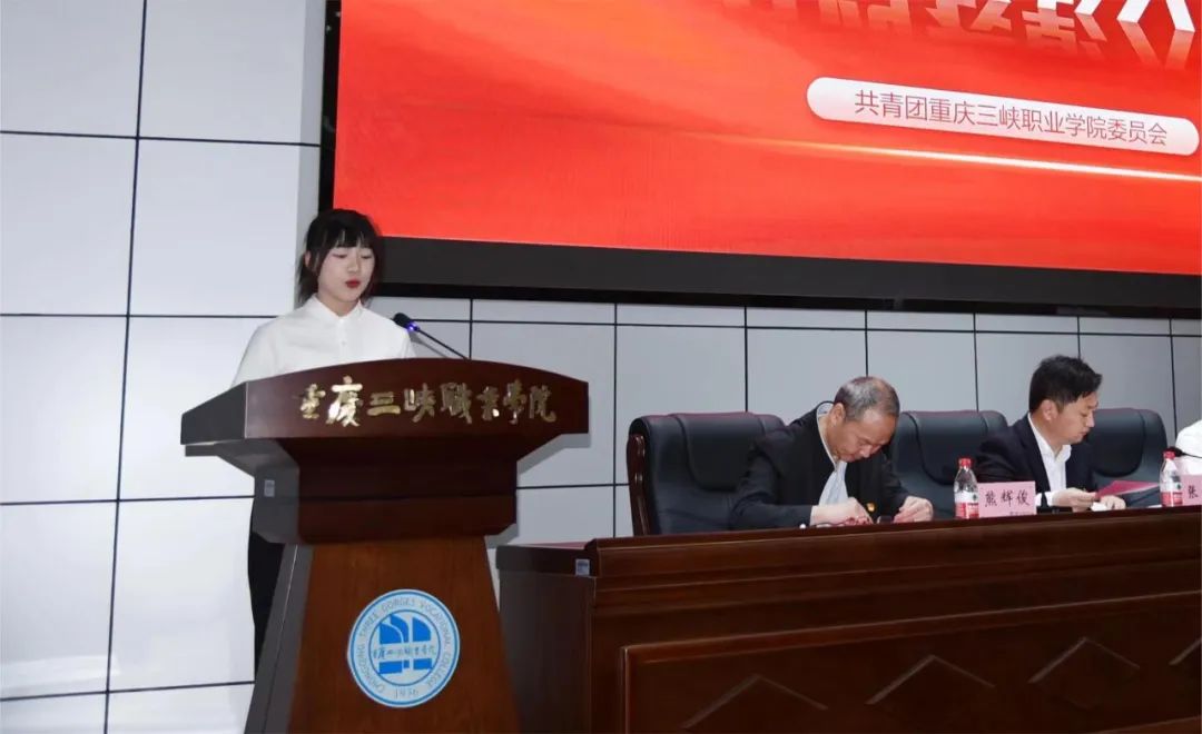 学工部副部长陶毅宣读《共青团重庆三峡职业学院委员会关于表彰2023年度“优秀共青团员”、“优秀共青团干部”、“五四红旗团总支”等先进集体和个人的决定》。