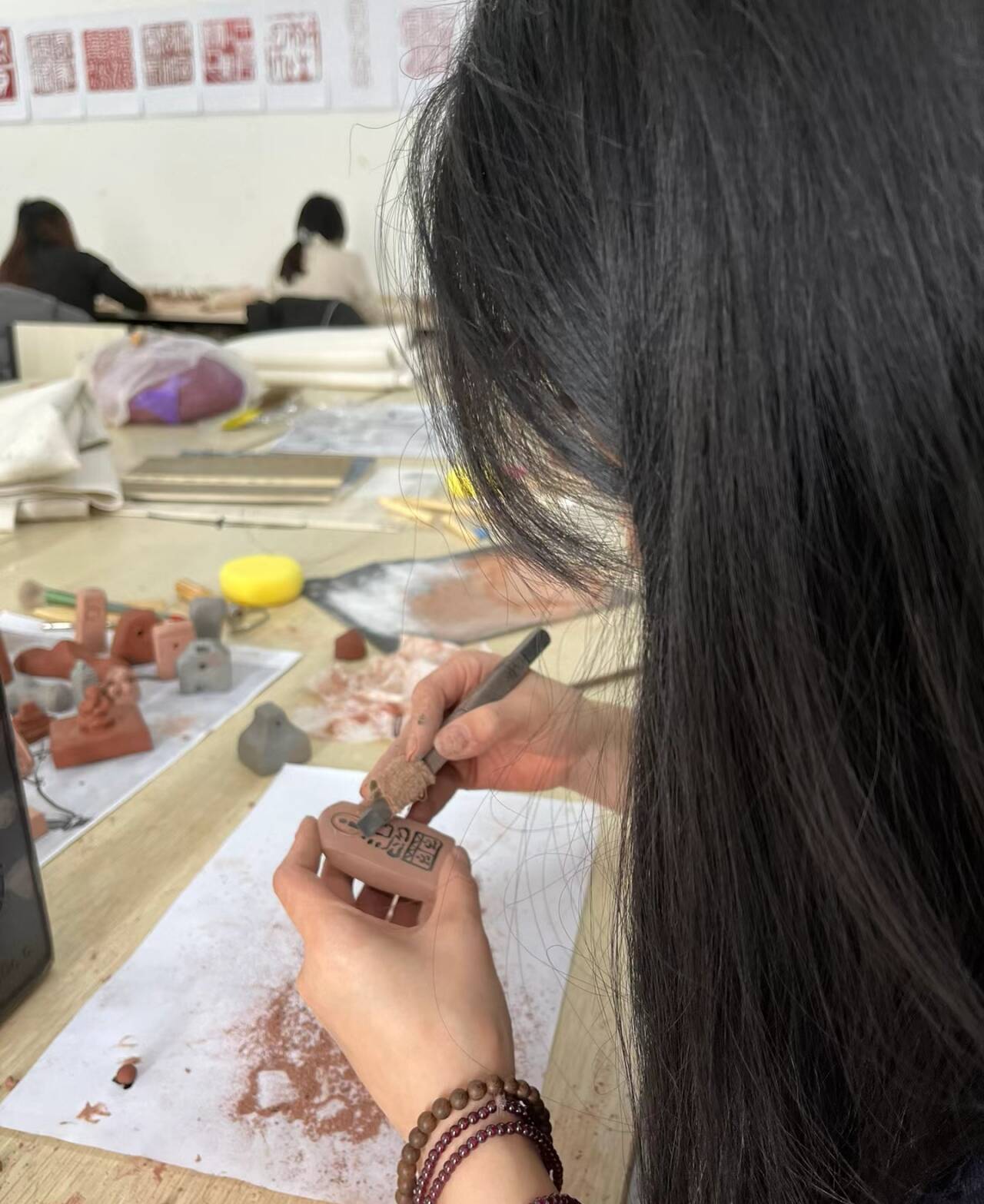 手工篆刻赛道的选手们则以刀为笔,以石为纸,精心雕琢每一个印面。他们手法娴熟,构思巧妙,将传统文化与个人创意完美融合,创作出了一枚枚精美的印章,彰显了传统技艺的独特魅力和传承价值。此次大赛不仅是对同学们文化知识和艺术才能的一次集中展示,更是学校文化育人理念的一次生动实践。