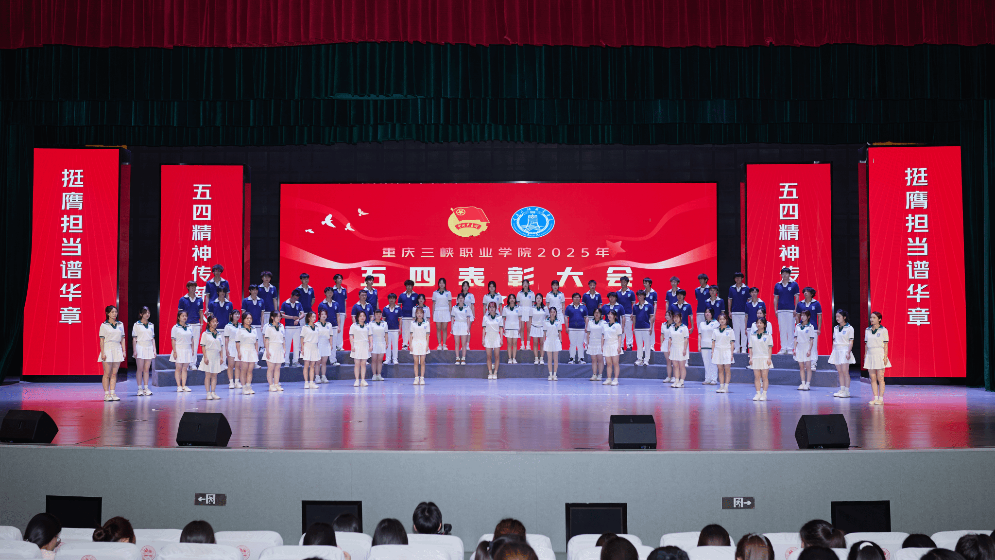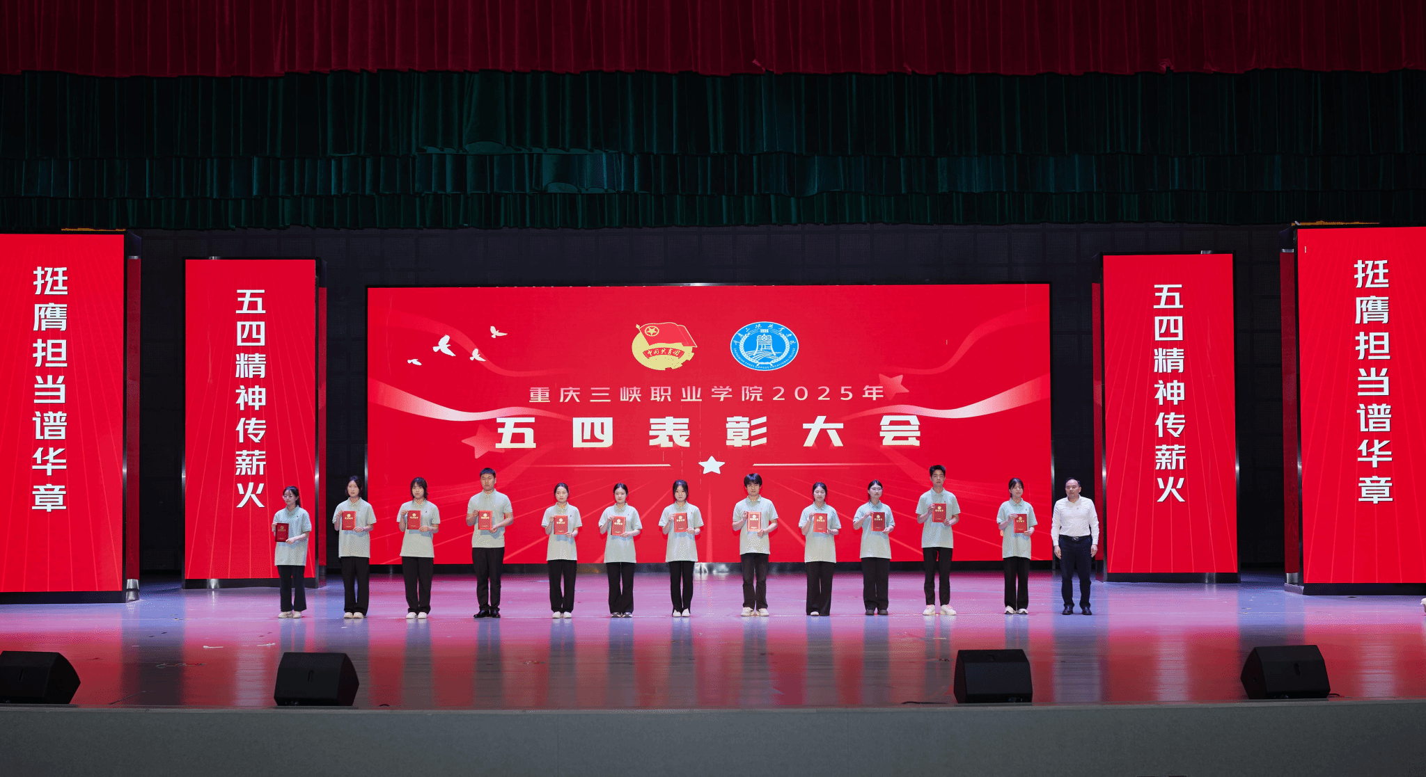 4月29日下午,重庆三峡职业学院“五四精神传薪火 挺膺担当谱华章”2025年五四表彰大会在学生活动中心举行。学校党委书记谈建成,校长李炯光,党委委员、副校长袁德梽、张传师,学校党委委员、纪委书记米密,学校党委委员、副校长丁廷发出席表彰大会。党委组织部、党委宣传部、党委学生工作部,以及团委负责人和各二级学院党总支书记、副书记、团总支书记,受表彰的先进集体及个人,学生代表近500人参会。