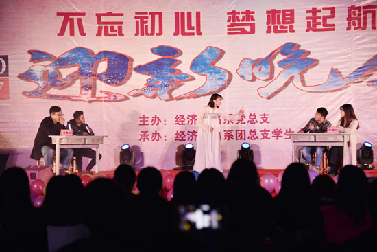 “欢庆十九大,青春正当时”。为了迎接2017级新生到来和庆祝党的十九大胜利召开,经济贸易系2017年迎新晚会于12月5日在学院羽毛球场隆重举行。出席本次迎新晚会的嘉宾有学院党委书记陈章,党委委员、副院长杨建宏,党委委员、组织统战部部长杨吉林,学工部、团委、经济贸易系部门负责人。杨建宏副院长为本次晚会致词。