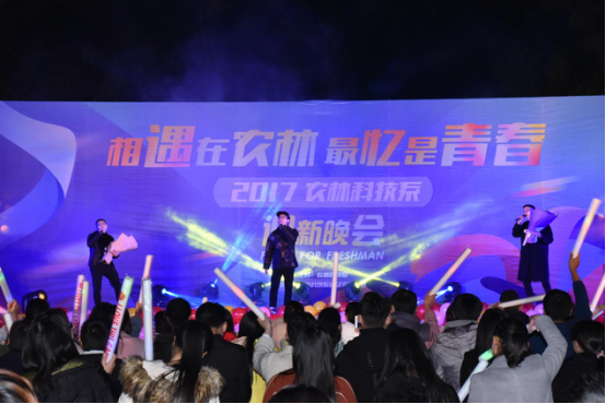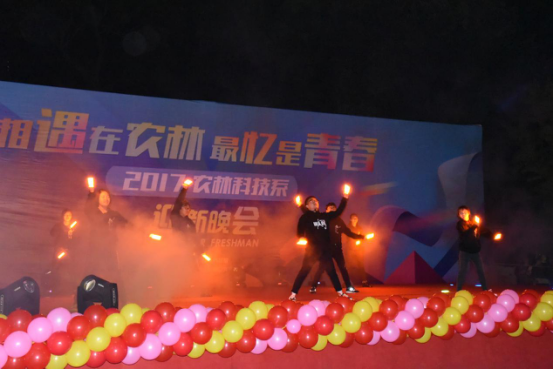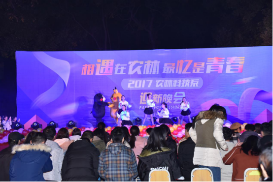 12月8日晚,农林科技系“相遇在农林 最忆是青春”2017年迎新晚会在学院羽毛球场上演。学院学生处处长熊江、学生处副处长黄莉、农林科技系党总支书记肖霞、农林科技系副主任丁廷发,各教研室主任、教师与农林科技系全体同学共同观看了本场晚会。