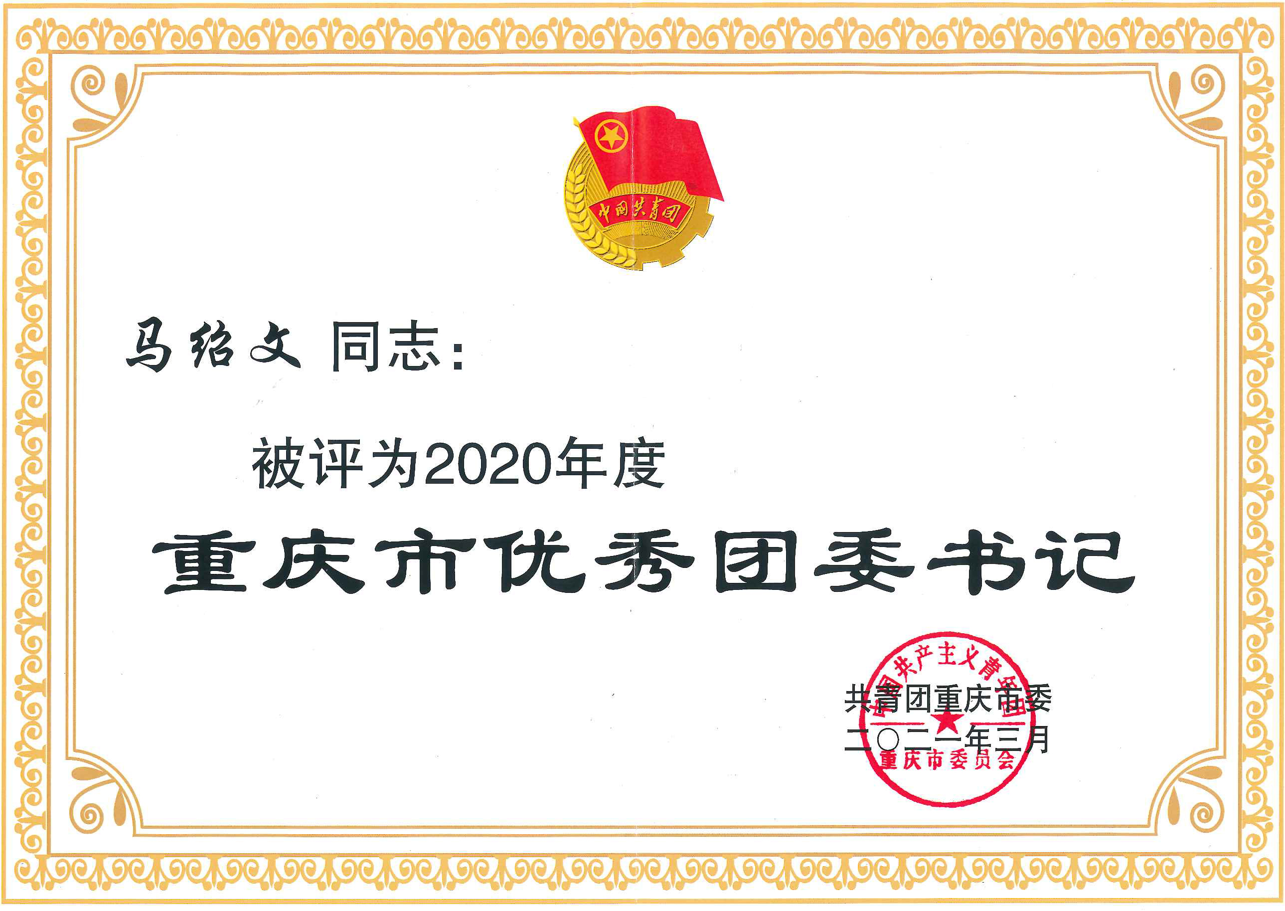 近日,接《共青团重庆市委关于2020年度重庆共青团工作目标考核结果的通报》(渝青发〔2021〕8号)文件,团市委对185个直属、重点联系团组织进行了年度目标考核。我院被评为2020年度重庆市共青团工作目标考核“特等团组织”,院团委书记马绍文同志被评为“2020年度重庆市优秀团委书记”称号。