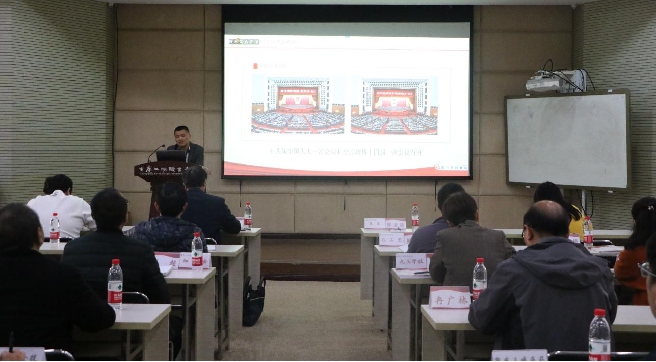 为及时传达全国两会精神,党委统战部于2023年3月21日下午2点,在博雅楼207会议室,组织召开党外干部政治学习会,邀请到了中共重庆市委统战部康程老师对全国两会精神的学习宣讲。会议由学院党委委员、统战部部长杨吉林同志主持,学校各民主党派(知联会)成员参会,同时重庆三峡医药高等专科学校、重庆安全职业技术学院的党外人士受邀参会,共50余人。