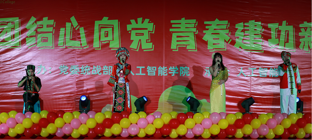 为深入学习贯彻习近平总书记系列重要讲话精神,紧紧围绕立德树人根本任务,充分发挥中国特色社会主义教育的育人优势。通过文艺汇演丰富校园文化生活,促进大数据专业群建设,创新人才培养模式,将“课程思政”融入人才培养全过程,推广育人体系。2023年3月14日,由学院党委统战部、人工智能学院联合主办,以民族团结为主题的“民族团结心向党,青春建功新时代”文艺汇演在羽毛球场如期的开展,统战部杨吉林部长、宣传部姜荣部长、校团委彭钦副书记、学生工作部卢文凤副部长、人工智能学院党总支书记熊泽明、副书记骆伟同志出席了本次文艺汇演。