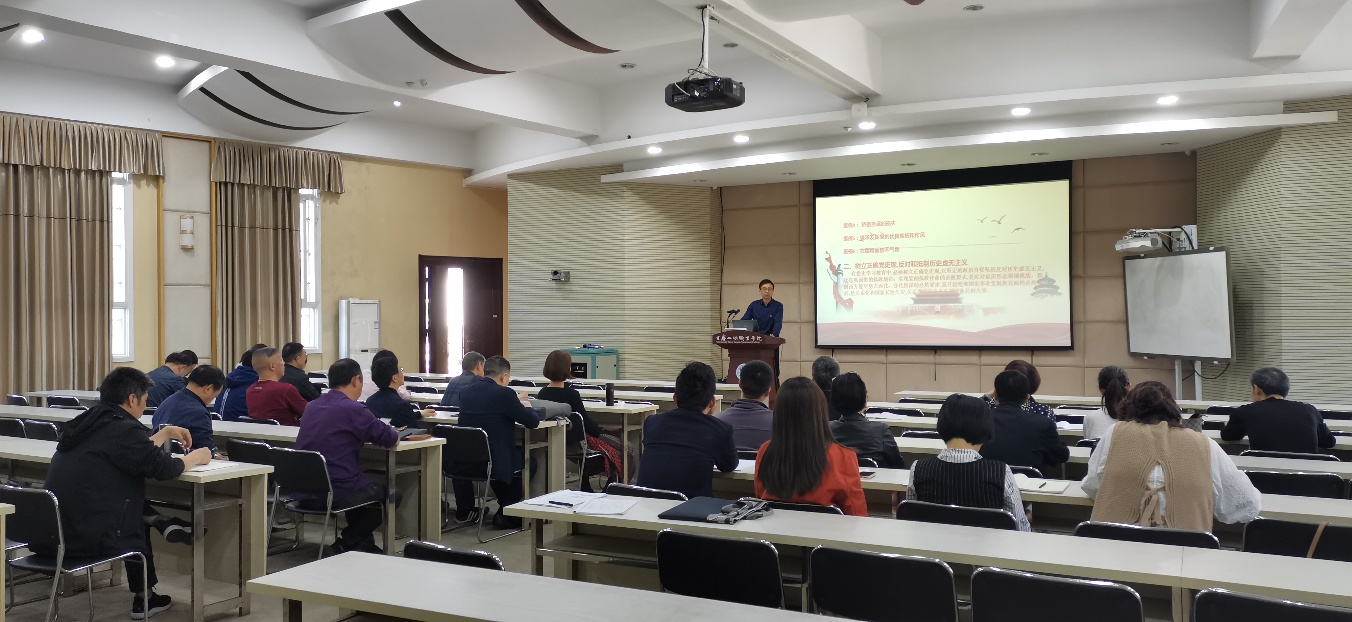 认真贯彻落实习近平总书记在党史学习教育动员大会上的重要讲话精神,突出学党史、悟思想、办实事、开新局,推动党史学习教育高起点开局、高标准起步,在全校师生中迅速掀起学习热潮。4月27日下午,党委统战部在博雅楼207会议室开展民主党派和党外知识分子党史学习,主题为《让百年党史之光照耀新征程》,由党委统战部部长杨吉林主讲。