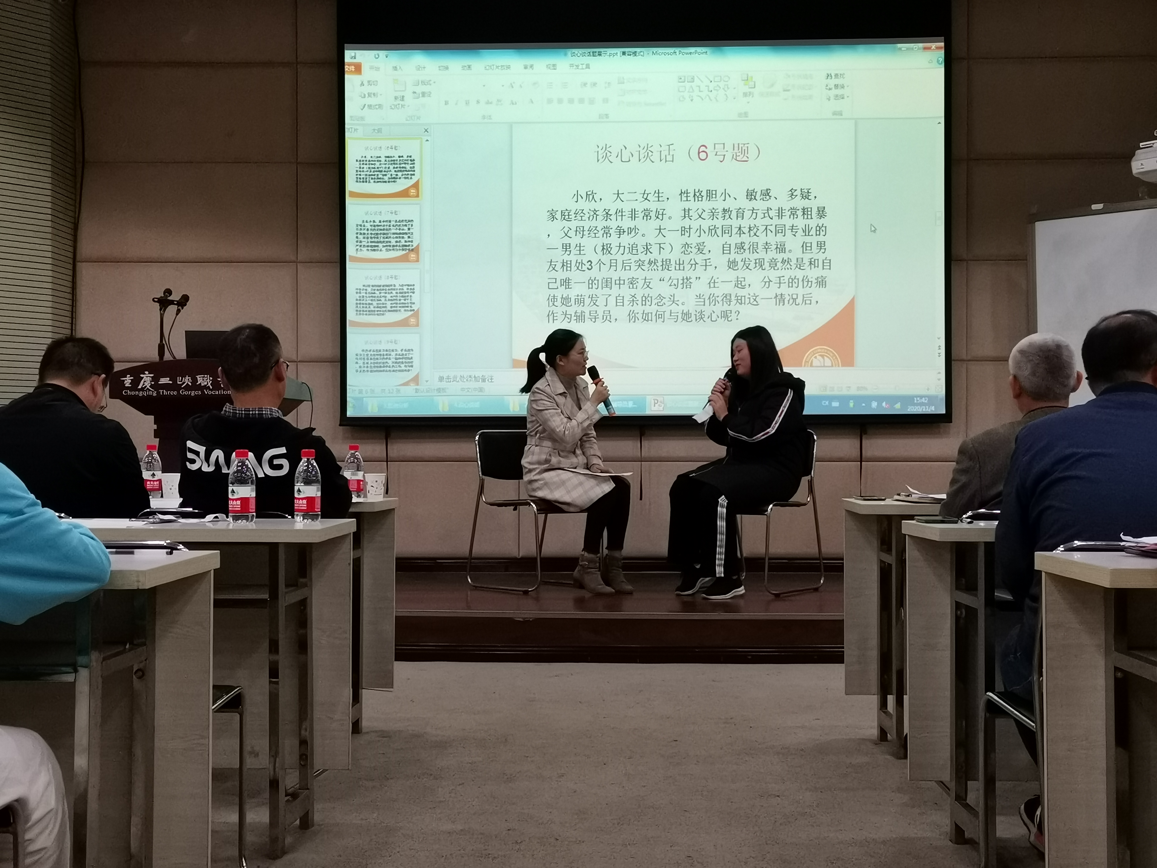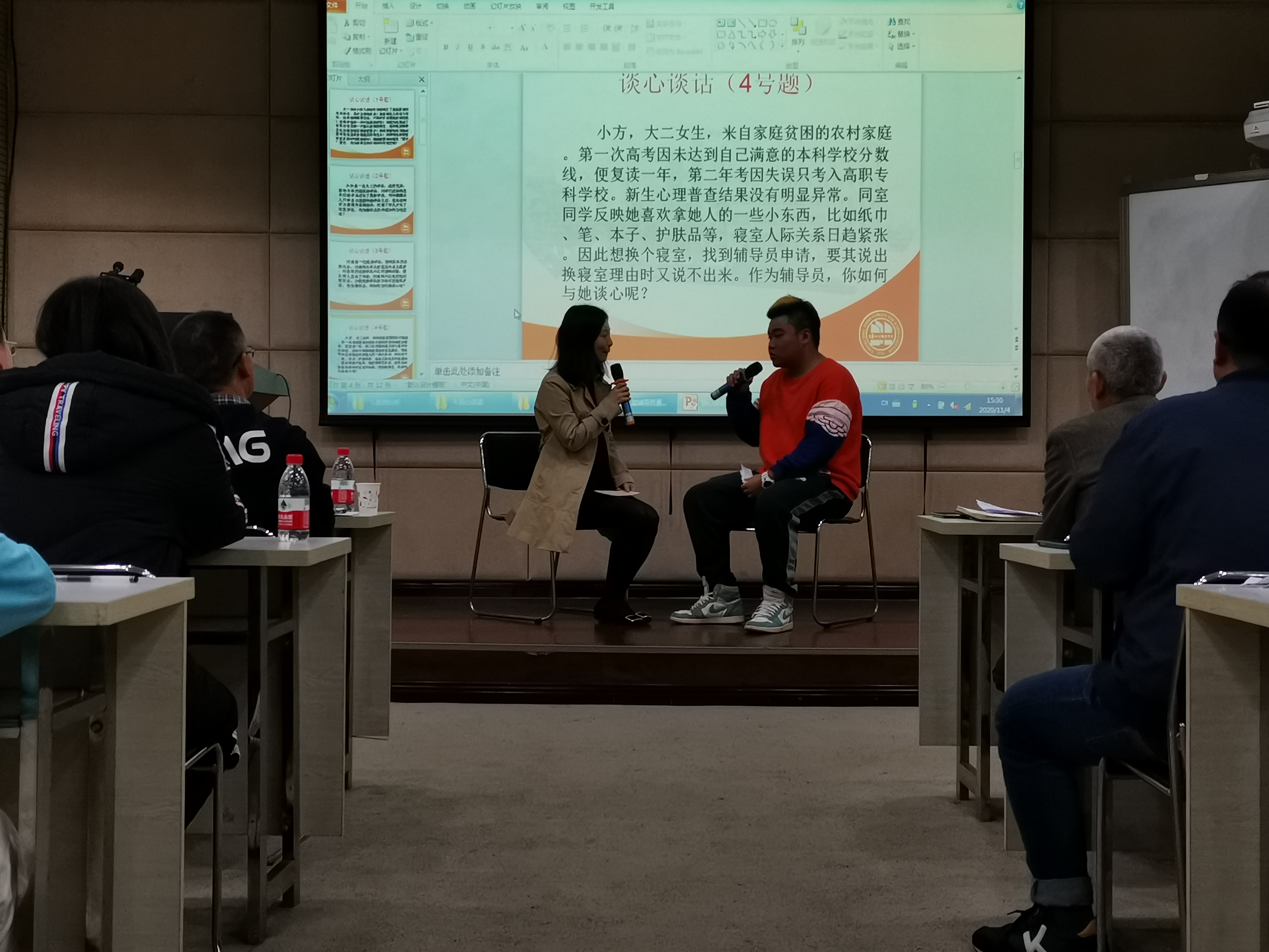 11月4日下午,我院第八届辅导员素质能力大赛决赛在博雅楼207成功举办。学校副校长赵福奎教授出席了大赛,重庆三峡学院学生处处长任江林,重庆三峡医药高等专科学校药学院党总支书记王家陟,重庆安全职业技术学院学生处处长陈跃、重庆幼儿师范高等专科学校学生处处长张玲,重庆三峡职业学院学生处副处长黄莉担任评委。学工部全体人员,各二级学院党总支书记、学工科、全体专兼职辅导员现场观摩。此次辅导员大赛由学生工作部主办,历时近一个星期,旨在考察辅导员对马克思主义理论、习近平新时代中国特色社会主义思想、党的十九大精神等的学习宣传阐释能力,对相关理论政策、学生特征、学生成长成才规律的了解把握,以及对问题的解决能力和对学生的教育引导能力,从而不断提升辅导员的政治素质、理论水平、专业素养和职业能力。大赛共分为笔试、理论宣讲、案例分析和谈心谈话4个环节,全方位考核辅导员理论基本功及结合日常工作开展思政工作的能力。
