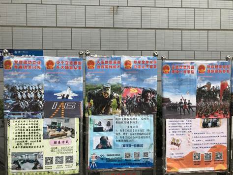 为支持国防和军队现代化建设,提高学校兵役工作质量,激发广大有志青年学子参军报国热情,学校高度重视大学生征兵工作,通过悬挂横幅、张贴海报营造征兵宣传氛围;开展征兵政策宣讲会交流经验办法;宣传退伍复学学生典型事例树立榜样并做好日常征兵咨询接待和政策解读等工作开展全覆盖、多角度的宣传动员和学生思想教育工作。