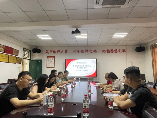 为了深入学习宣传贯彻习近平新时代中国特色社会主义思想和党的十九届历次会议精神,进一步推进学校学生思想政治工作质量提档升级,更好的服务学生成长成才。2022年6月9日下午2点,重庆三峡职业学院人工智能学院和汽车工程学院在信科楼503会议室成功举办了“第七届学生工作创新论坛”第三组分论坛。人工智能学院党总支副书记骆伟、汽车工程学院党总支副书记沈枫以及两个学院的专职辅导员、部分教师参加了此次论坛。