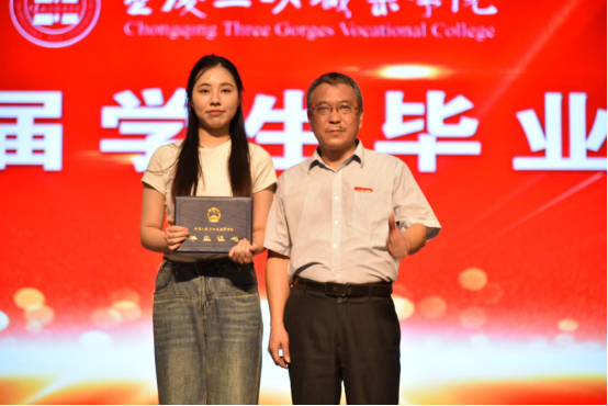 典礼在全场齐唱国歌声中拉开帷幕,学院纪委书记王凯教授宣读《重庆三峡职业学院关于准予付青云等4009名学生毕业的决定》。