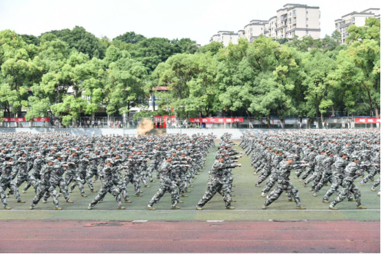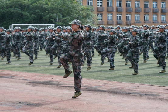 成果展示在庄严的国歌声中拉开帷幕,军训团以连为单位,按建制序列依次进行成果展示,成果展示分列式、拳术与战术汇报。49支方队,迈着整齐划一、铿锵有力的步伐,依次列队经过主席台,他们坚定的眼神尽显英姿飒爽,激昂的口号彰显热血青春,有力的步伐迈出钢铁意志,展现了出奋发向上的精神风貌!在拳术与战术展示环节,英姿飒爽的“战场救护”展示;虎虎生威的军体拳表演;精彩纷呈的心理健康操,向党和学校汇报14天的军训成果。