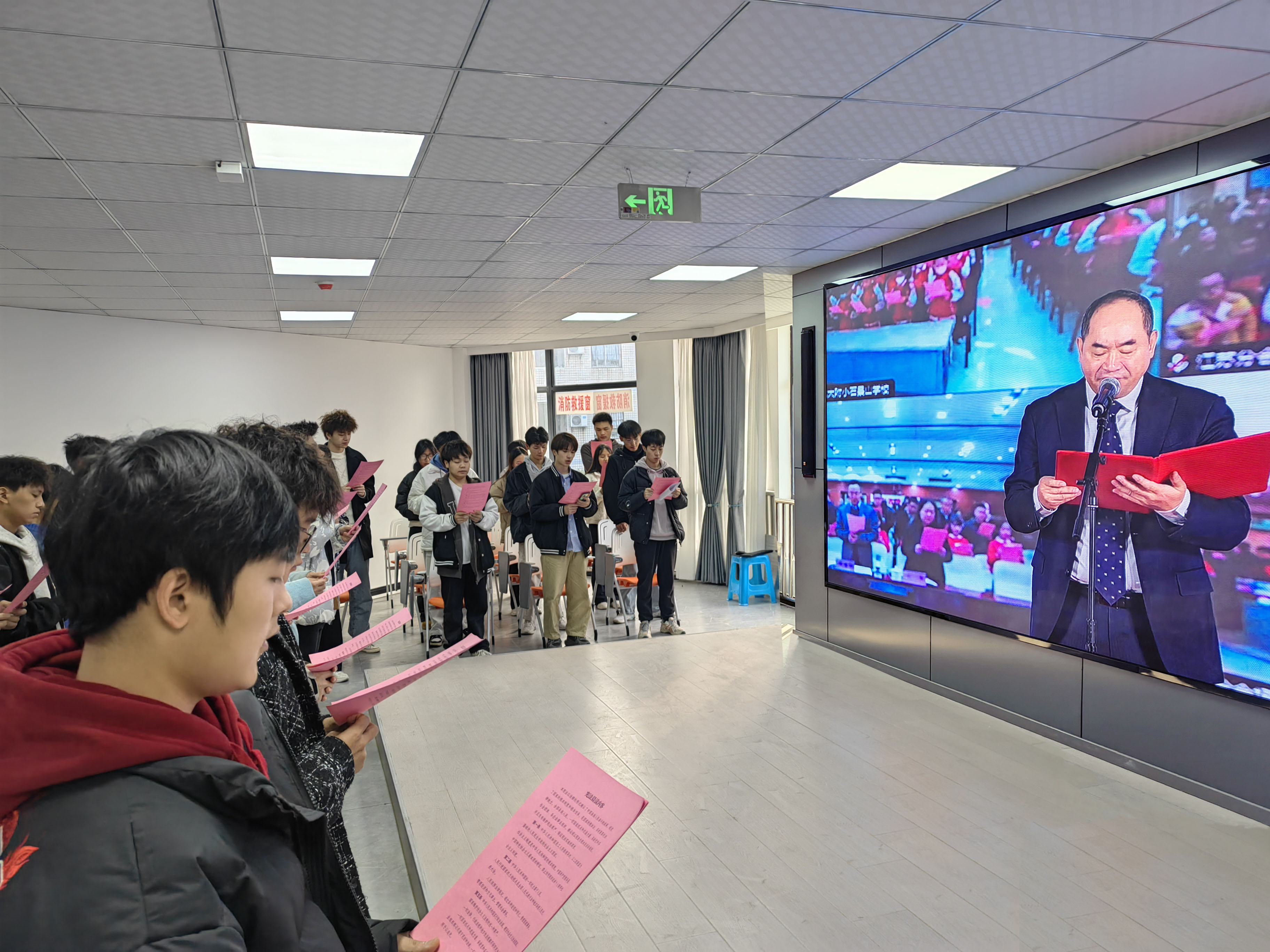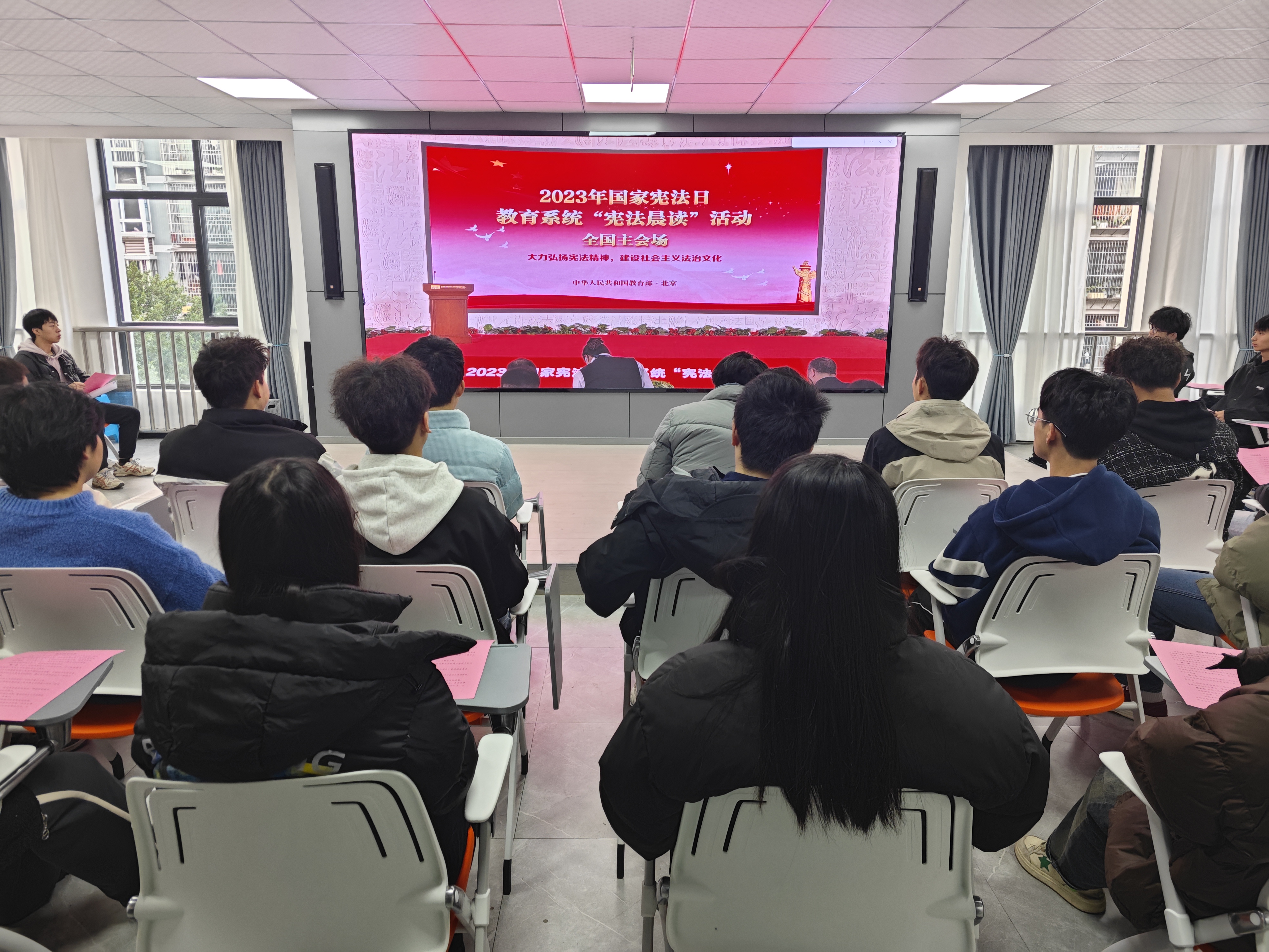 12月4日是第十个国家宪法日。12月4日上午,我校组织大学生开展“宪法晨读”活动。晨读活动在我校峻德书院思政演播大厅举行,共60余名师生参加。