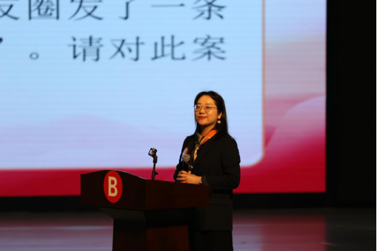 决赛分为案例研讨和谈心谈话两个环节。案例研讨以AB角“你问我答”形式开展,考察辅导员的案例分析能力和理论知识储备,参赛选手熟练运用理论知识针对各案例进行深入分析,统筹把握案例的主要内容,找到案例关键点攻坚克难,探索问题核心,精确提供解决思路,牢抓细节总结经验。