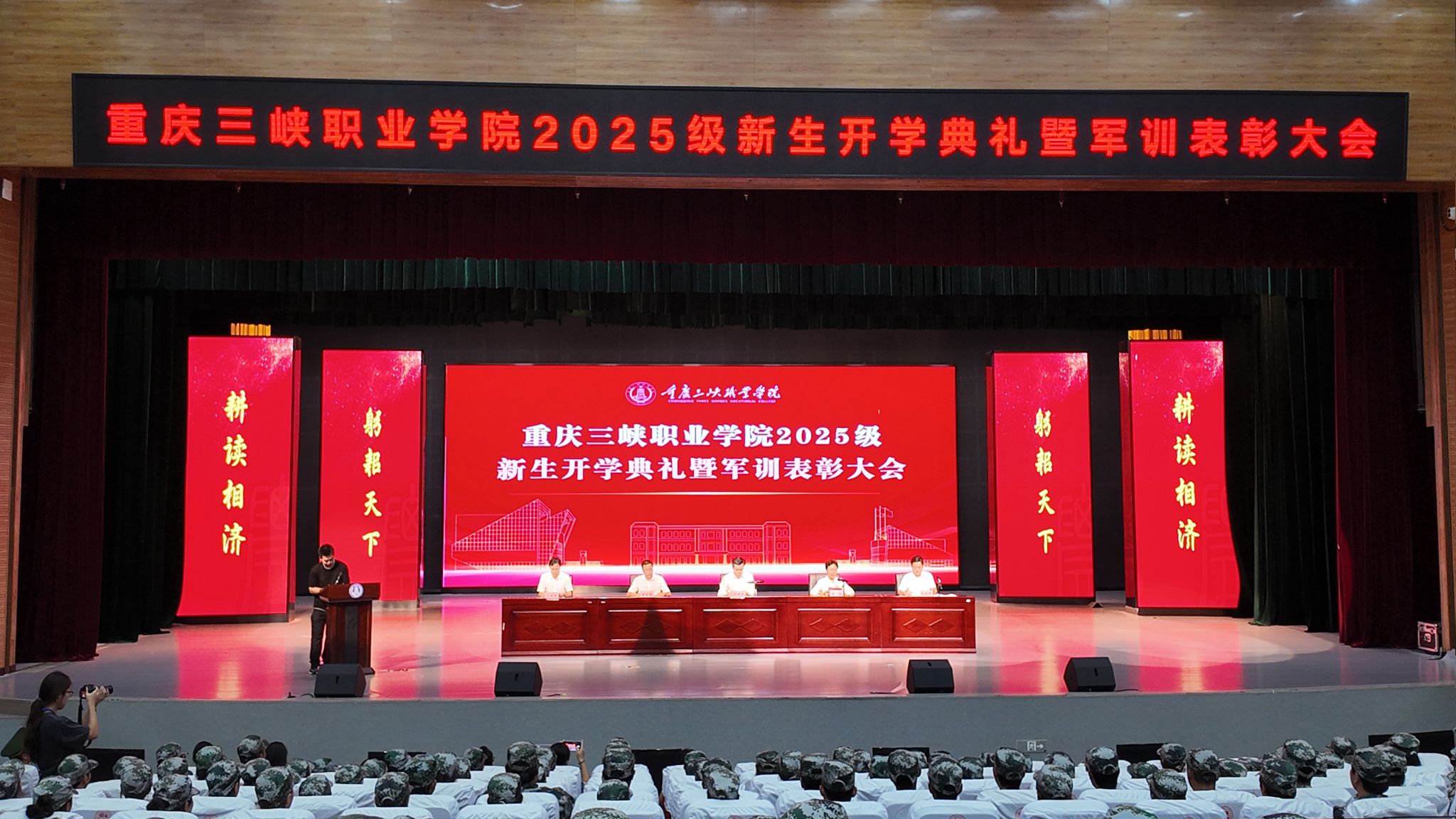 9月23日,学校2025级新生开学典礼暨军训表彰大会在大学生活动中心举行。在校领导、各职能部门及二级学院负责人、新生辅导员和新生代表参加。大会由党委副书记杨梅主持。