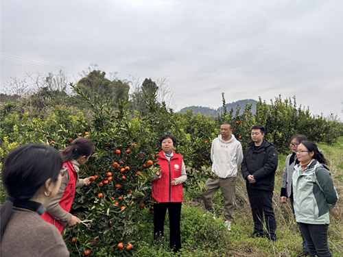 调研组首先参观了重庆三峡农业科学院甘宁试验站的柑橘试验田。试验站负责人详细介绍了该站在柑橘品种选育、技术推广及服务地方农业经济等方面的工作成效。作为三峡库区农业科技创新的重要基地,试验站长期致力于粮油作物、经济作物的研究,为区域农业发展提供了强有力的科技支撑。