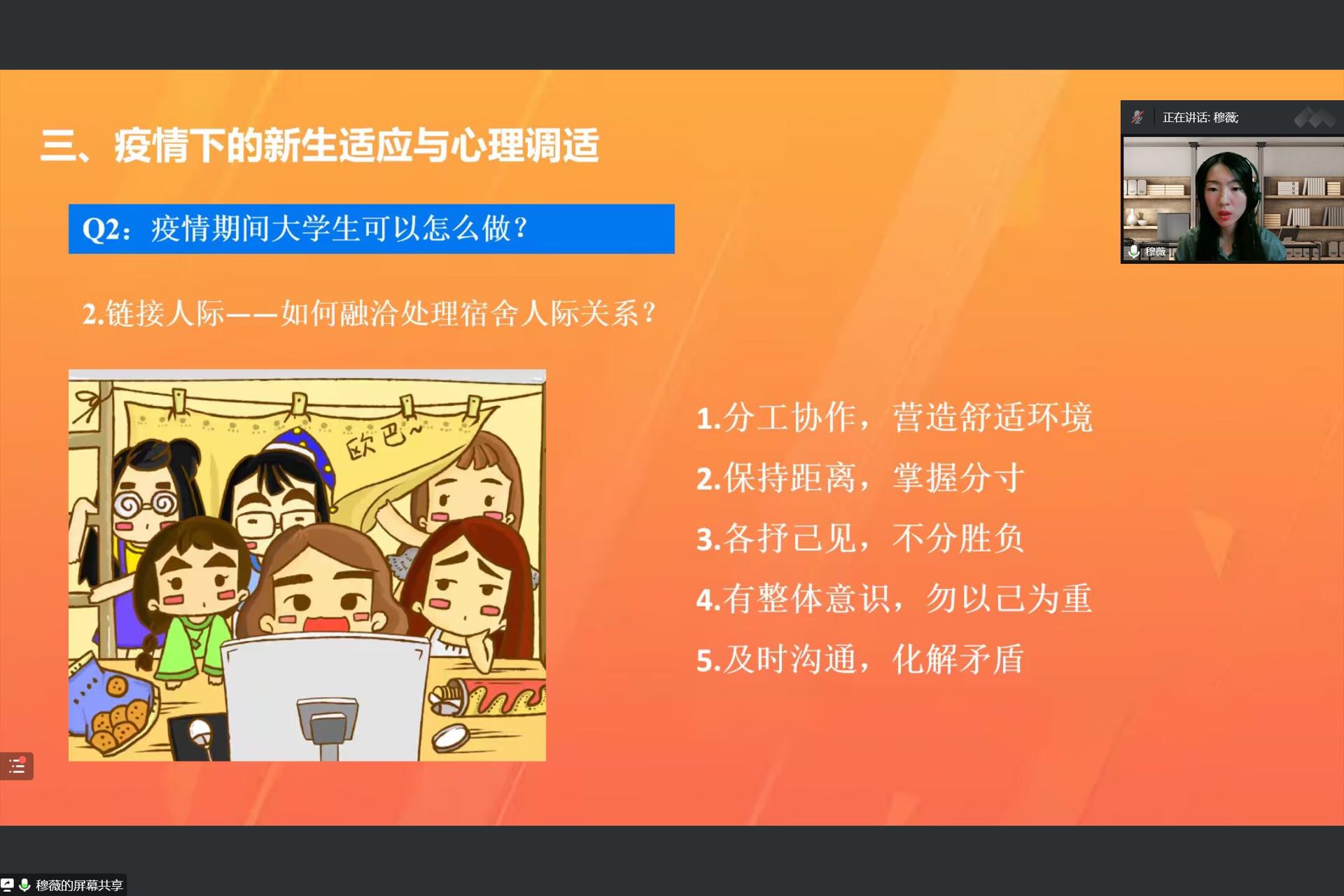 9月20日-29日,大学生心理健康教育指导中心为2022年新生开展了线上心理健康教育专题讲座。三位心理健康老师从我校"10·25"心理健康宣传教育活动的开展入手,倡议大家积极参与心理健康教育活动,在活动中敞开心扉、互助成长;向大家科普了心理健康的基础知识,希望大家关注心理健康,积极采用心理咨询等方式解决自己的心理困惑和问题;结合静默管理期间的新生心理特征,从情绪、人际、学习、时间管理等方面向大家提出适用的调适方法。