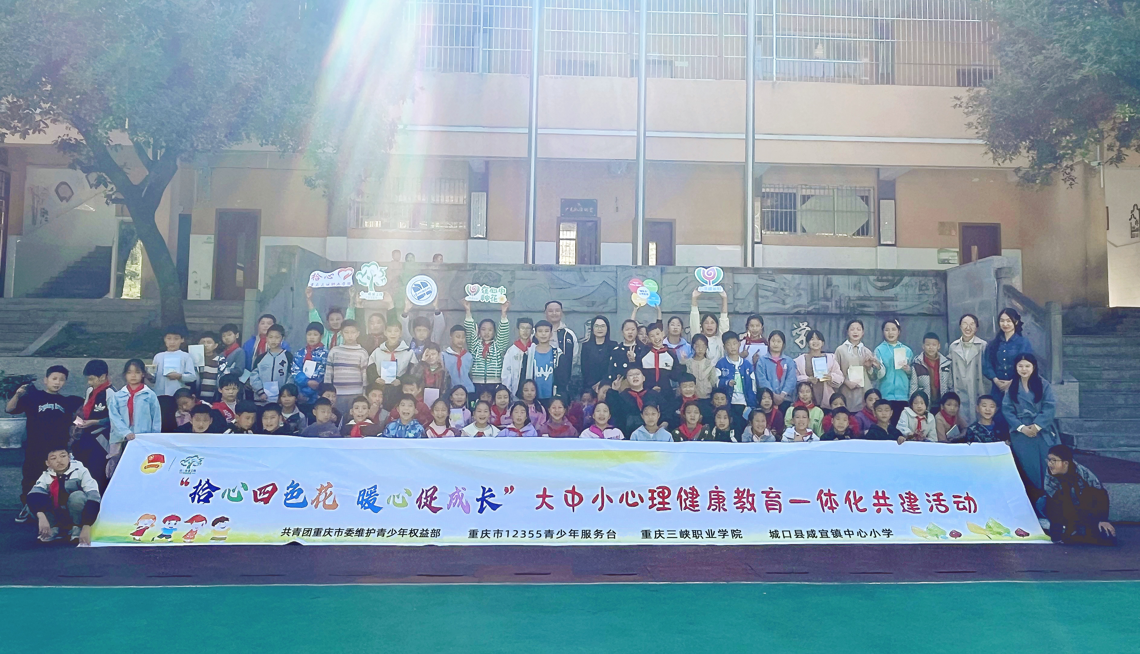 为贯彻落实教育部、民政部、国家卫生健康委、共青团中央等单位印发的《全面加强和改进新时代学生心理健康工作专项行动计划(2023-2025年)》,守护青少年身心健康,促进青少年全面发展。10月23日,我院与城口县咸宜镇中心小学携手,成功开展“拾心四色花·暖心促成长”大中小学心理健康教育一体化共建活动。