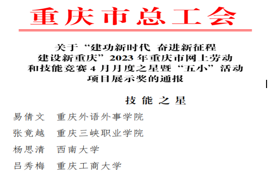 动物科技学院教师张竟越荣获2023年重庆市网上劳动和技能竞赛技能之星