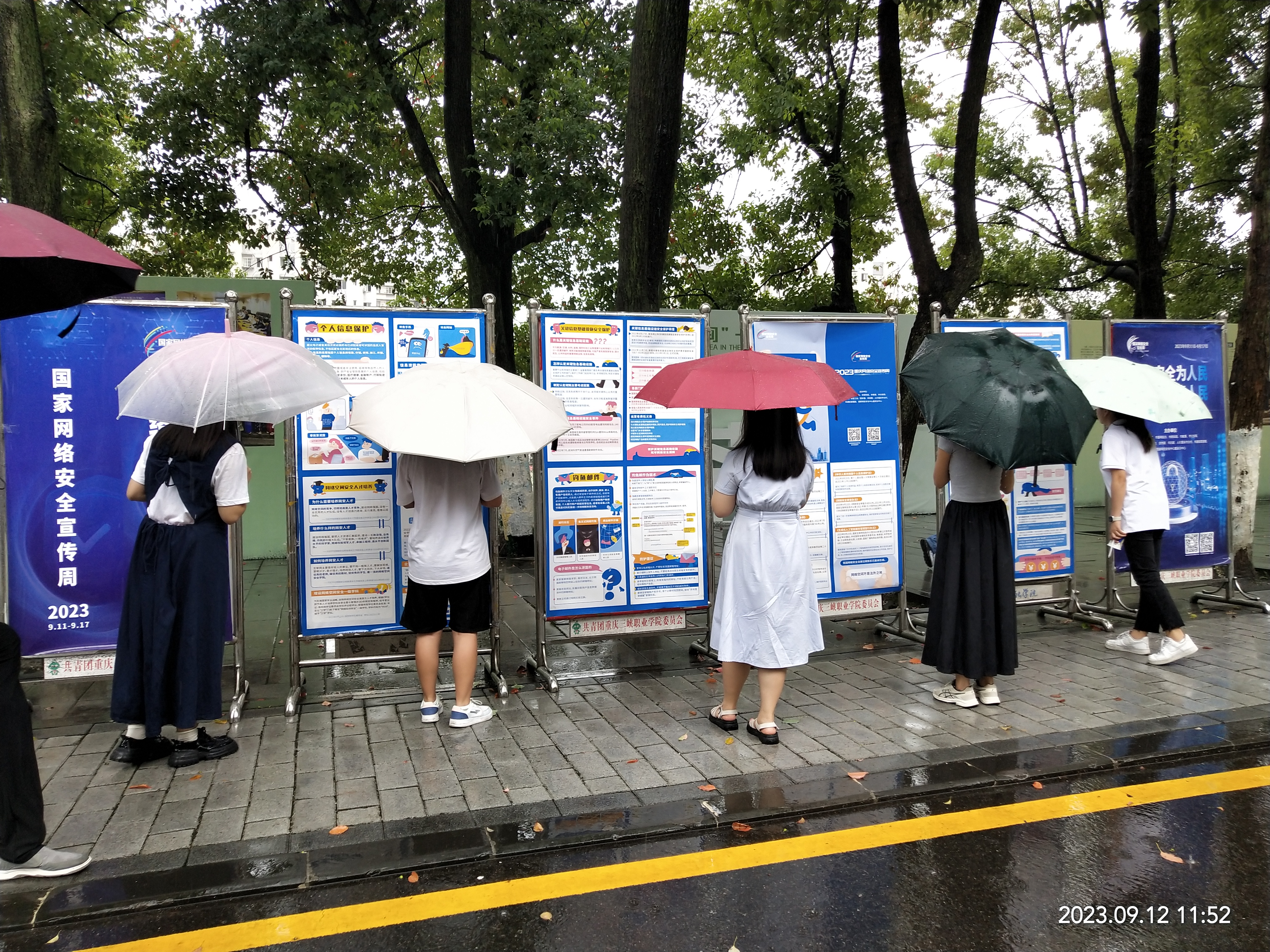 9月12日是校园宣传日,网络安全信息中心和团委组织学生在校园樟树林向过往师生发放网络安全知识宣传资料。